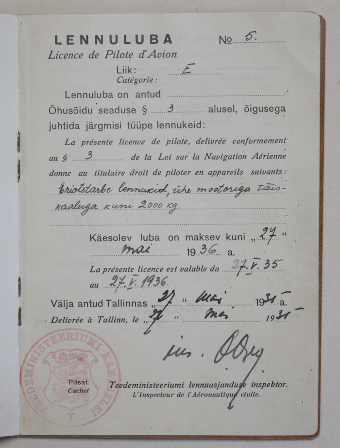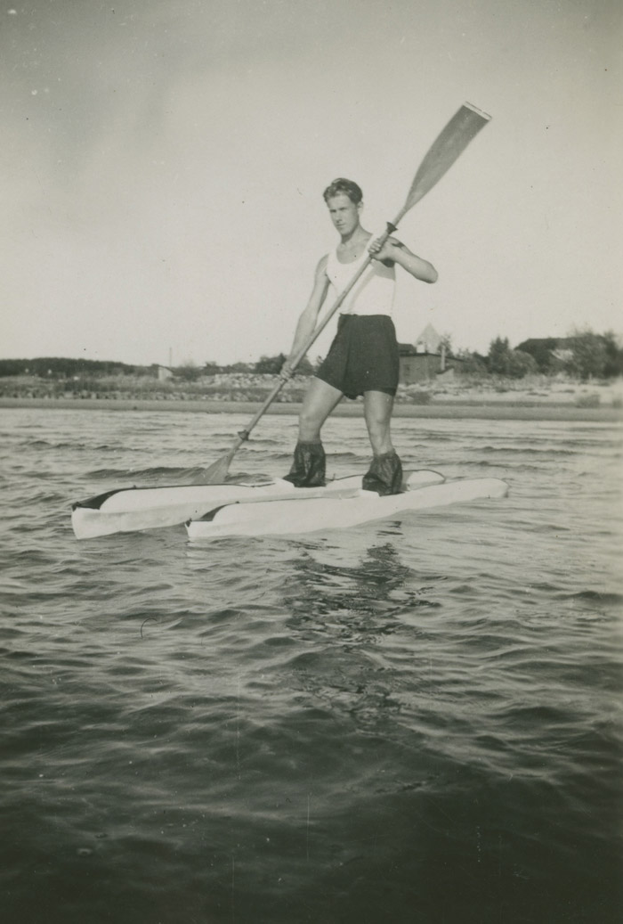 18. - 20.07.1937 sõitis omatehtud pontoonsuuskadel üle Soome lahe Helsingisse.