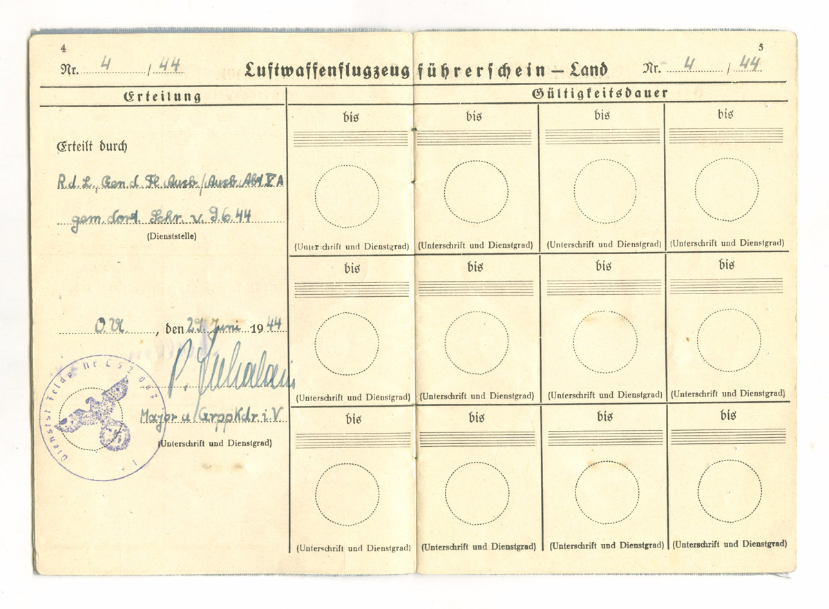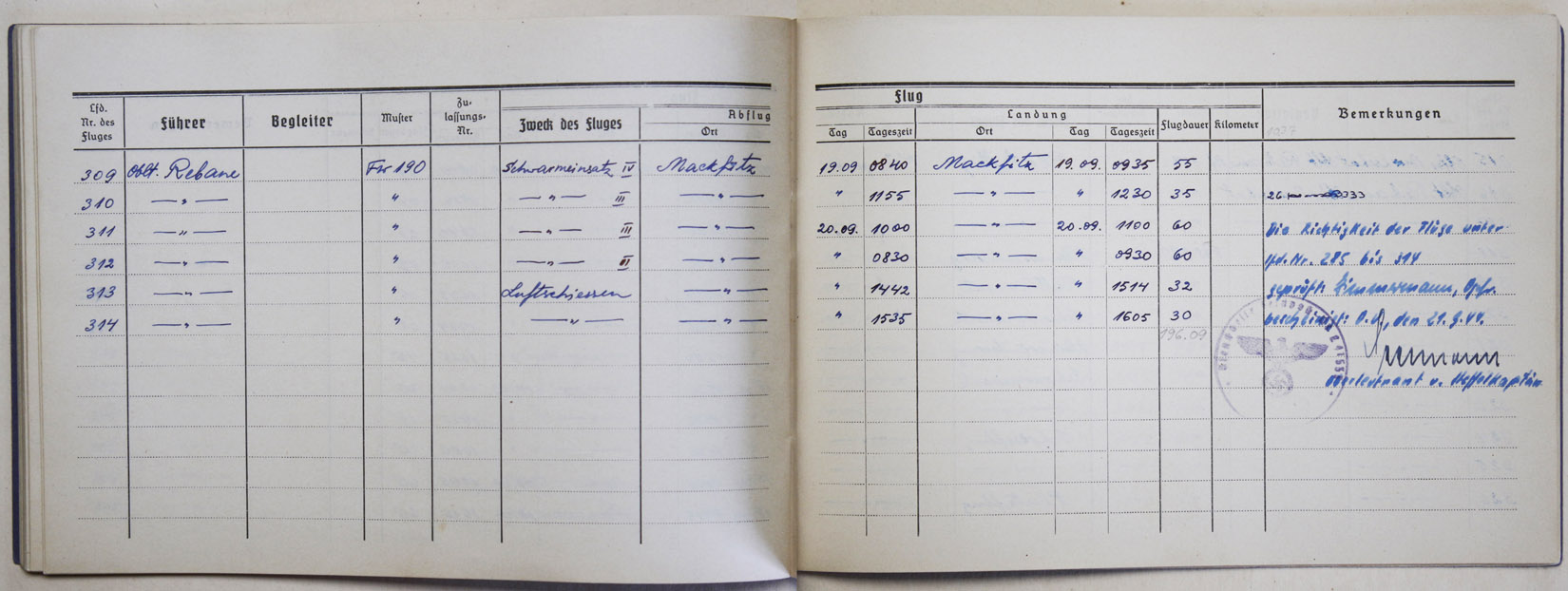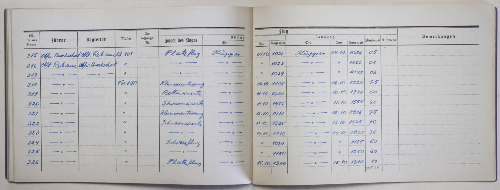 Tema lennuraamatu järgi toimus esimene õppelend Focke Wulf 190 peal Mackfitz'i lennuväljalt 12.09.1944, juba 20.09.1944 pakiti ennast seal kokku ja väljaõpe jätkus Küpper'i lennuväljalt.