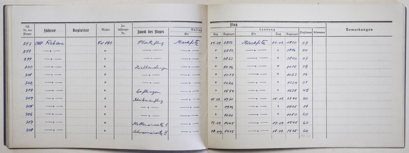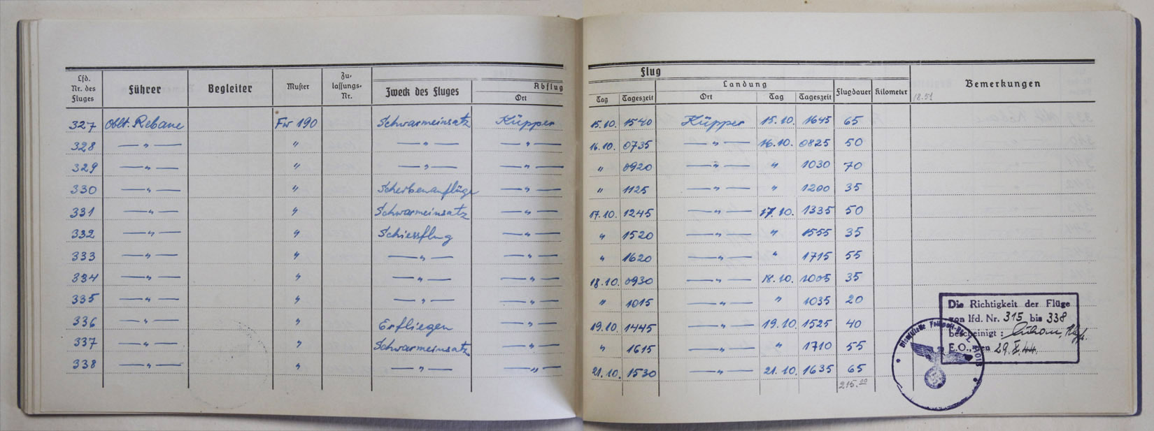 Ning nüüd tema lennuraamatu kaks kõige huvitavamat lehekülge - 1945. aasta aprillis Focke Wulf 190'ga sooritatud lahingulennud!