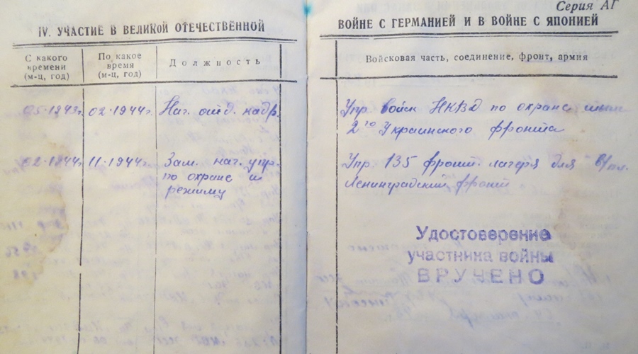 NKVD alampolkovnik Jefim Manõshevi isikutunnistus ja väljavõtted sõjaväepiletist. Manõshev oli 286. ( Tallinn ) ja 289. ( Kohtla- Järve ) sõjavangilaagrite juhtivkoosseisus, sõjaväepileti järgi Nov. 1944- Mai. 1947.
