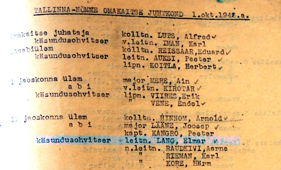 1941. aasta sügisest käsundusohvitserina Nõmme Omakaitses