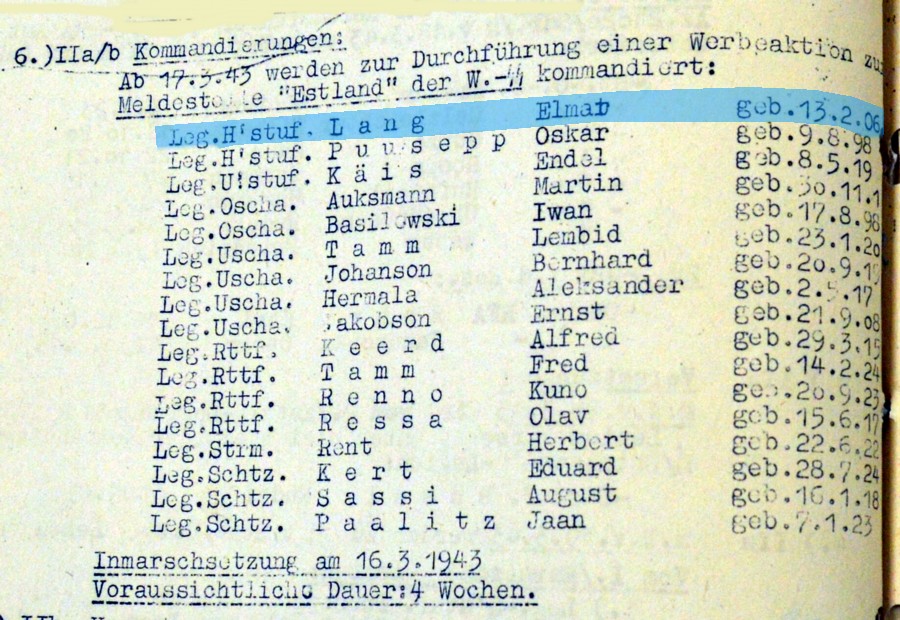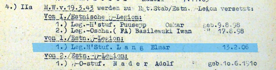 Enne I Pataljoni lahkumist diviisi "Wiking" koosseisu, asendatakse Leg. H.Stuf. Lang H.Stuf. Raudsooga.
