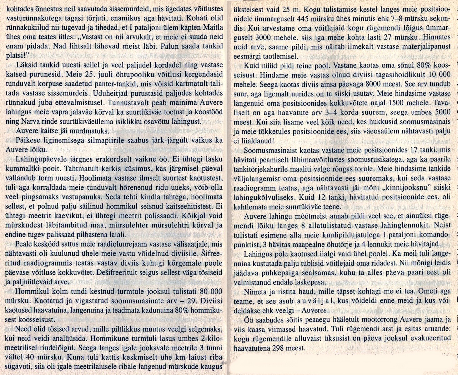 Voldemar Pinni lahingukirjeldus 1999. aastal ilmunud raamatust "Auvere sangar"