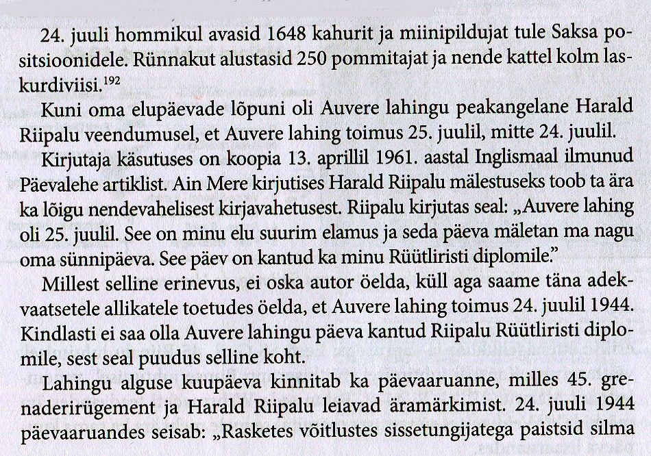Loetu põhjal võib öelda, et vaidlus Auvere lahingu toimumispäevast, kas 24. või 25. juuli, ei vii kuhugi!