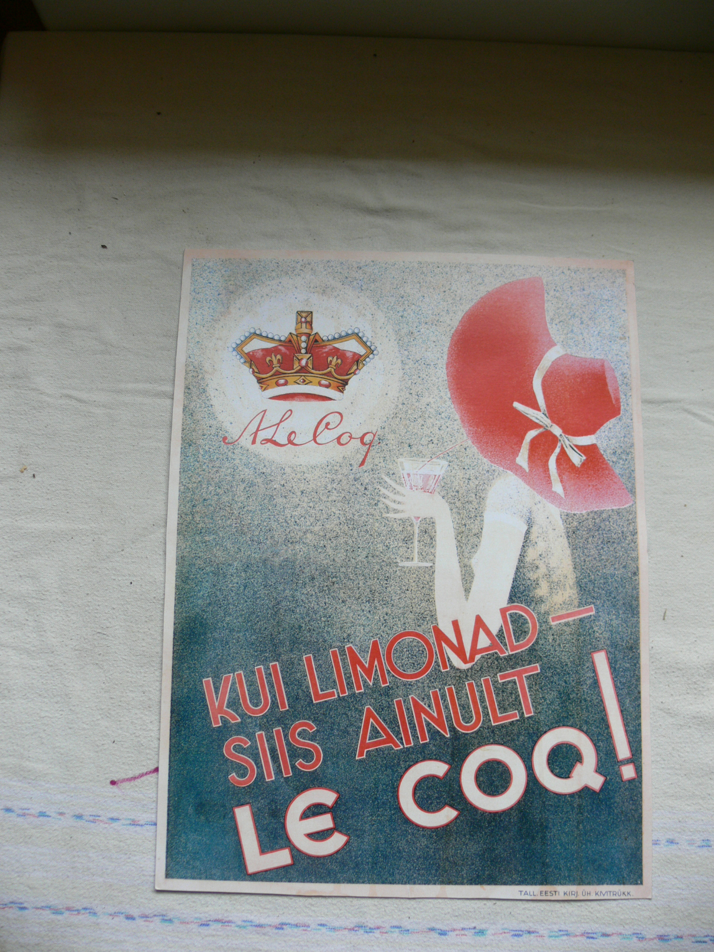 Pakkutakse sellist reklaami. Möödud 28,5x 39cm. Paksul paberil. Müüja ise kahtleb ,kas on orginaal.Endale tundub ka ,et paber on liiga valge selle ajastu kohta ?