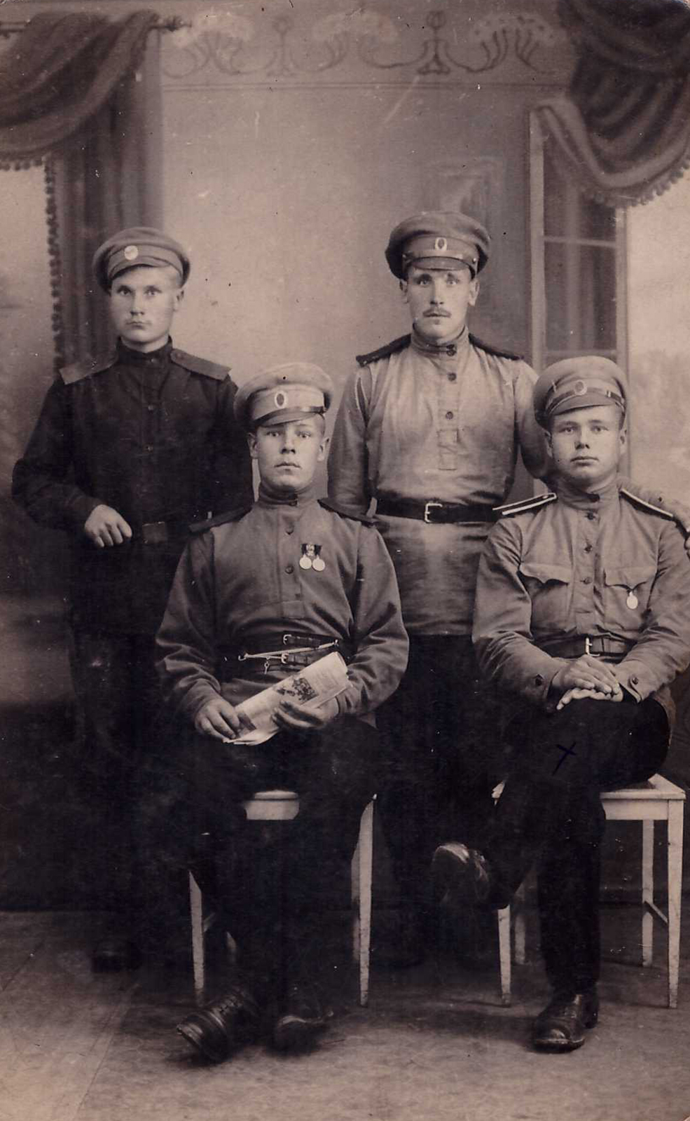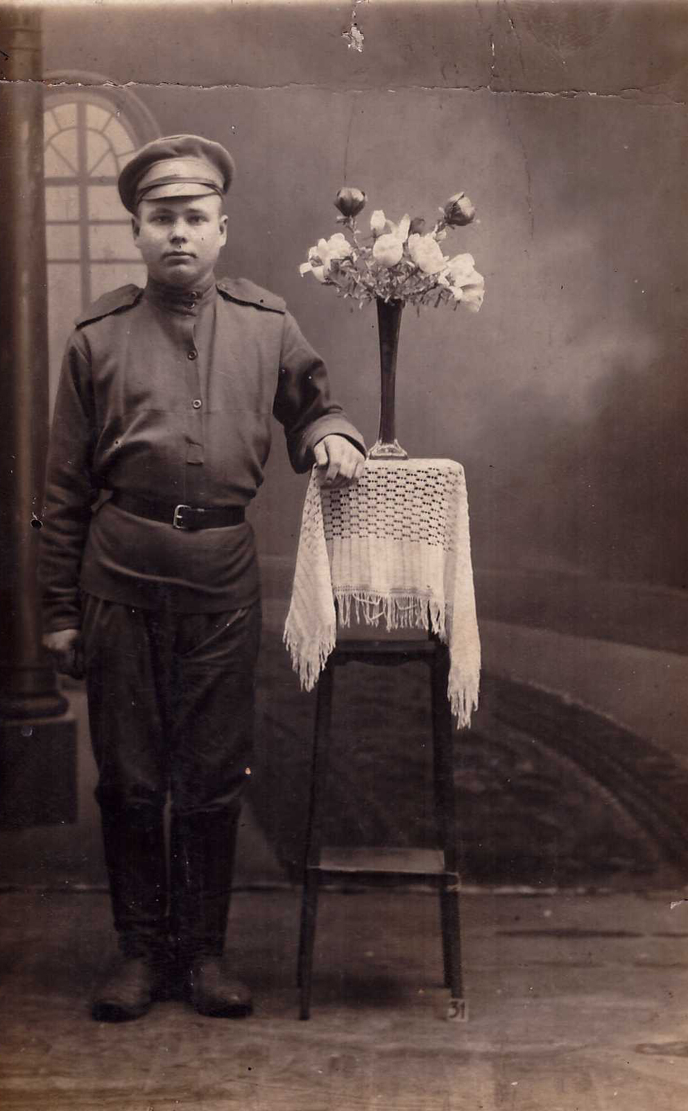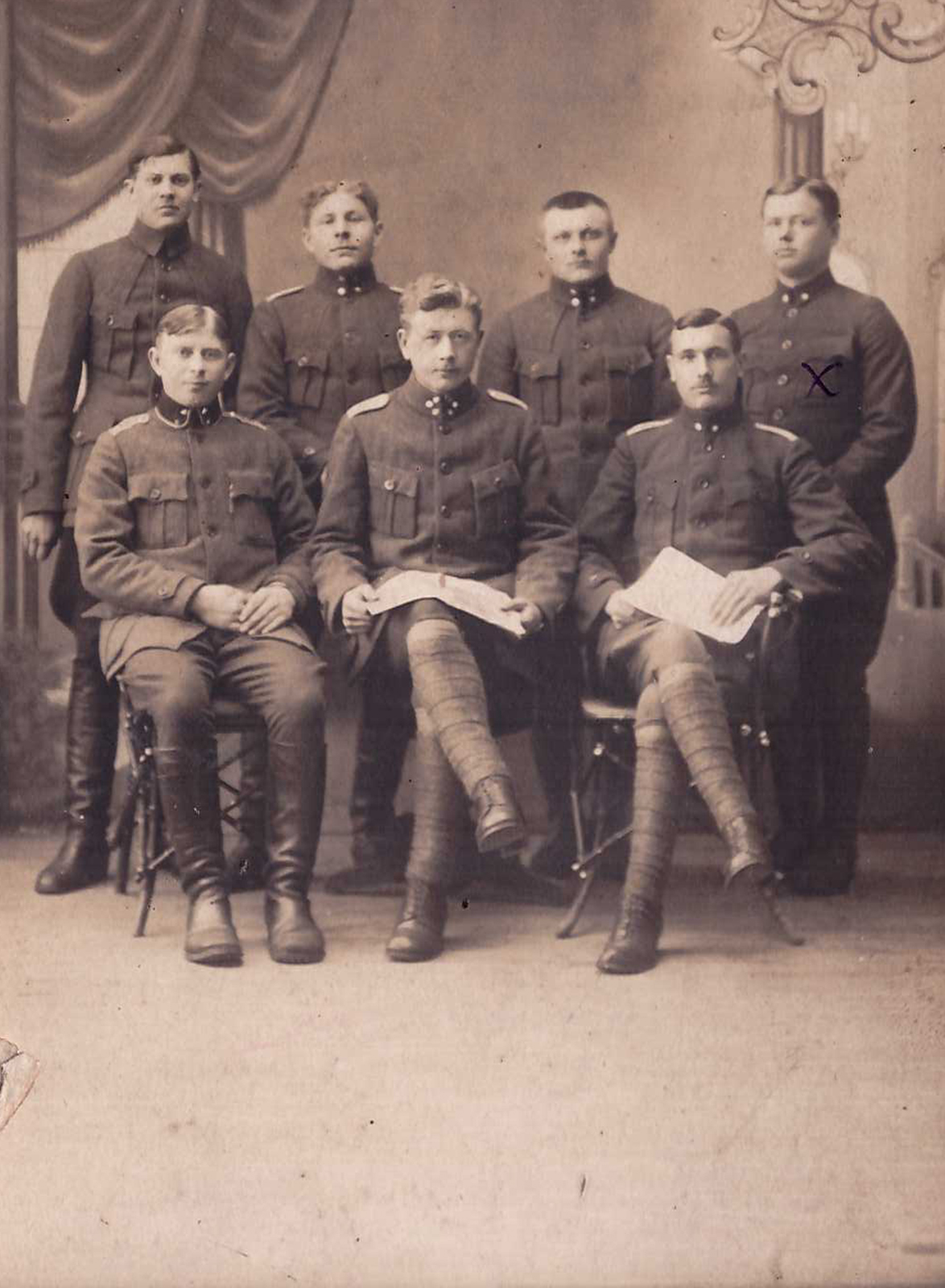 Lisan siia ka mehe varasema fotoseeria maailmasõja ajast.Esimene foto 29.jaanuar 1917.Mees 21 aastane.Teine foto võetud 22.juulil Tallinnas Marienburgi mõisas??? Mis asi see võib olla?