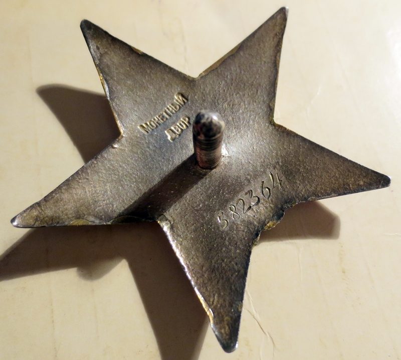 Orden on tegelikult väga heas korras, aga ta on kaetud kohati mingi lakiplögaga. No, et paremini säiliks. Ja säilis ka. Aga see mögin tuleb muidugi ettevaatlikult eemaldada. Sirbi ja vasara juures on seda veel näha ja natuke mujal ka.