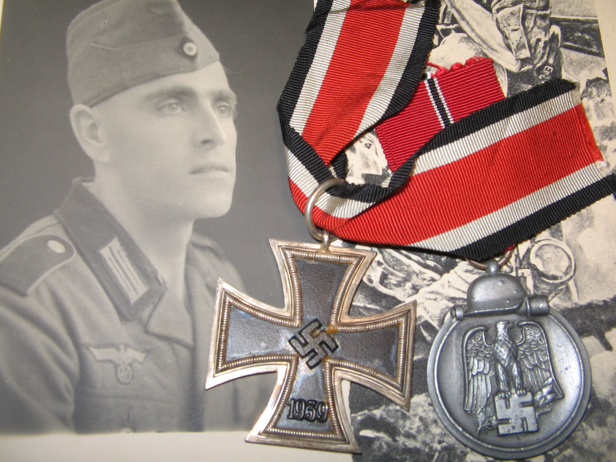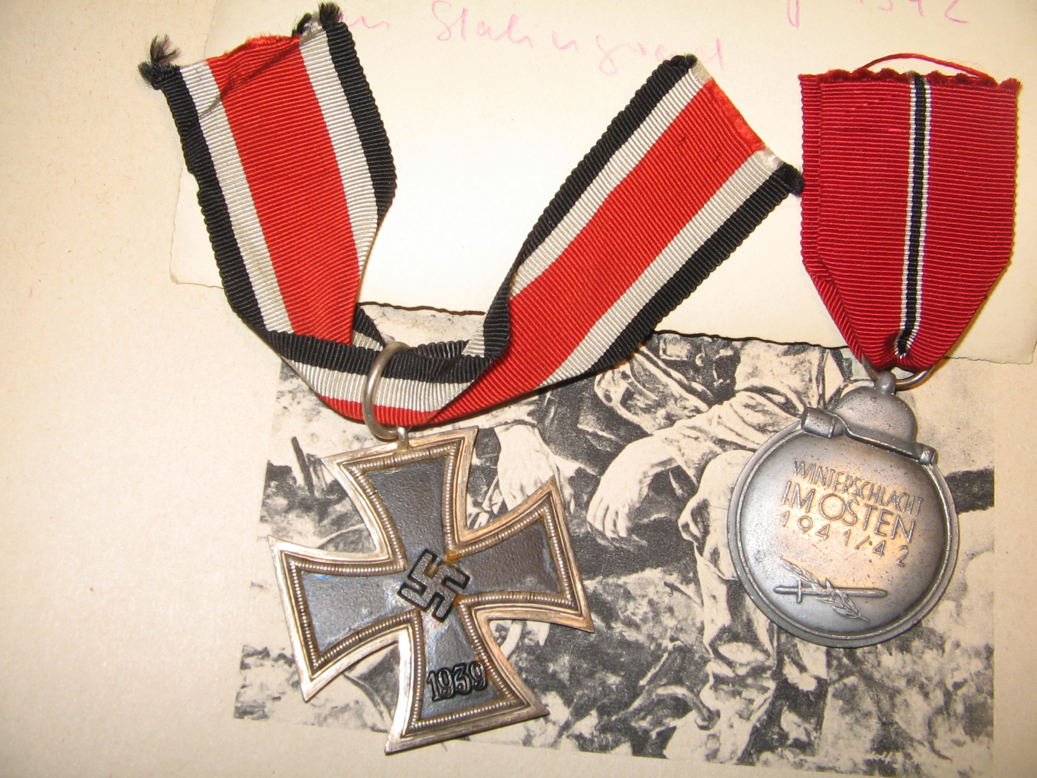 Kõik kenad originaalid. EKII rõngal markeering puudub, idamedali rõngal markeering 60. Kaasa tuleb ka foto, mille taga kirjutatud: Unser Hans, gefallen am 1. Sep. 1942 in Stalingrad. Garantiid muidugi anda ei saa, aga nii ma selle komplekti kunagi koos ostsin ja ei hakka seda ka nüüd lõhkuma.