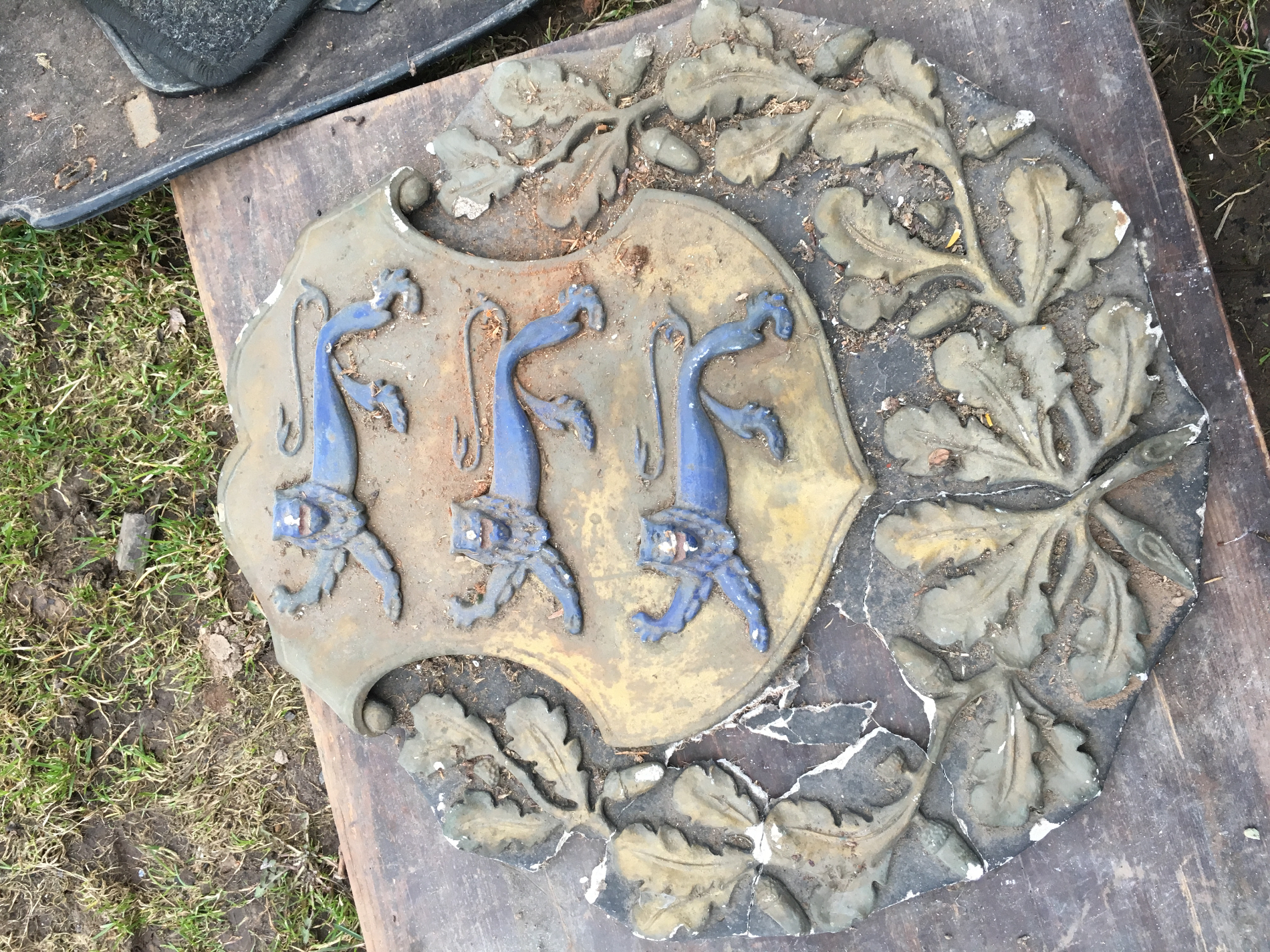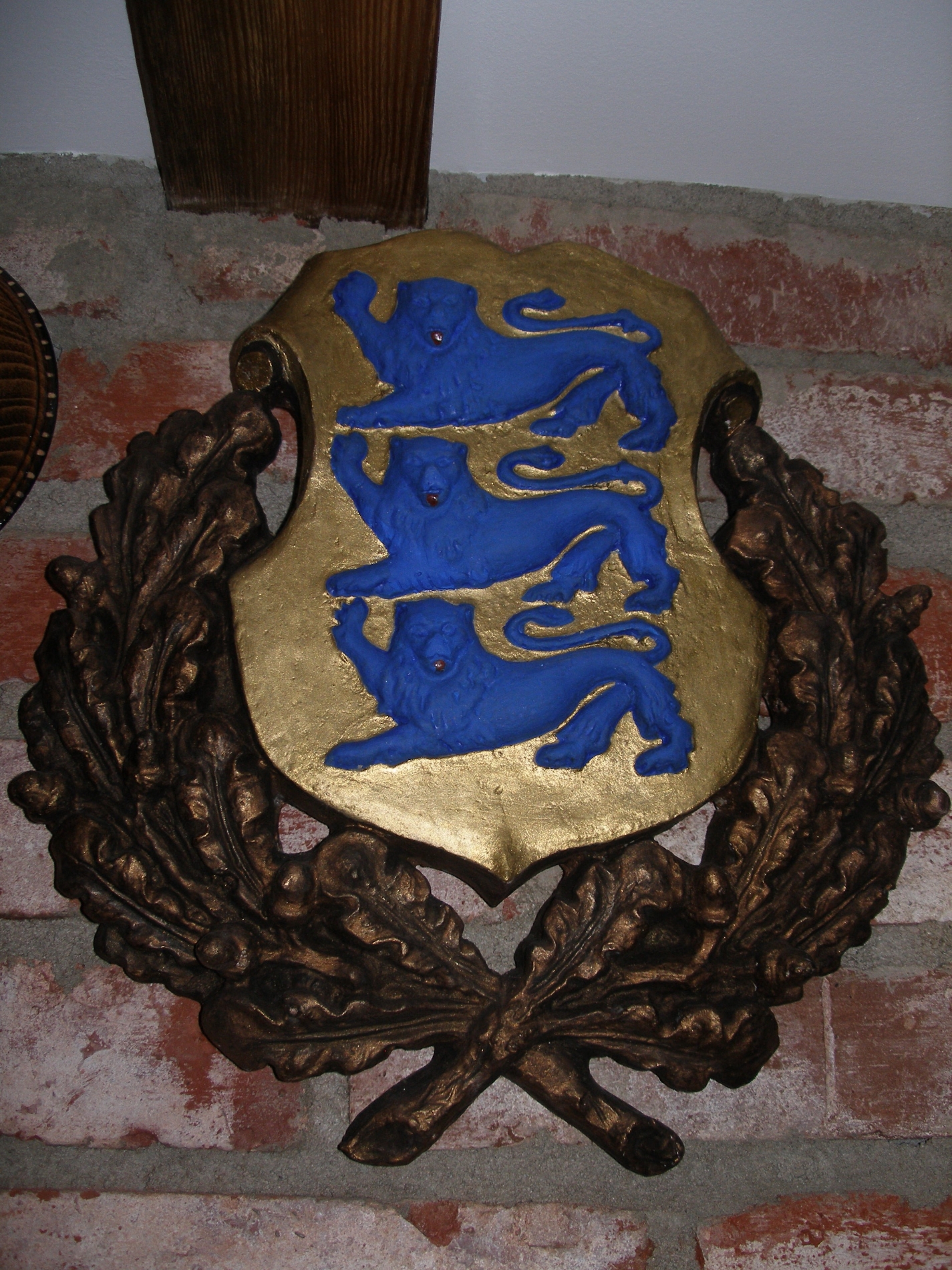 Siin restaureeritud vapp. Puudusid osaliselt tammelehed jmt. Aru igatahes ei saa, millised osad juurde tehtud.