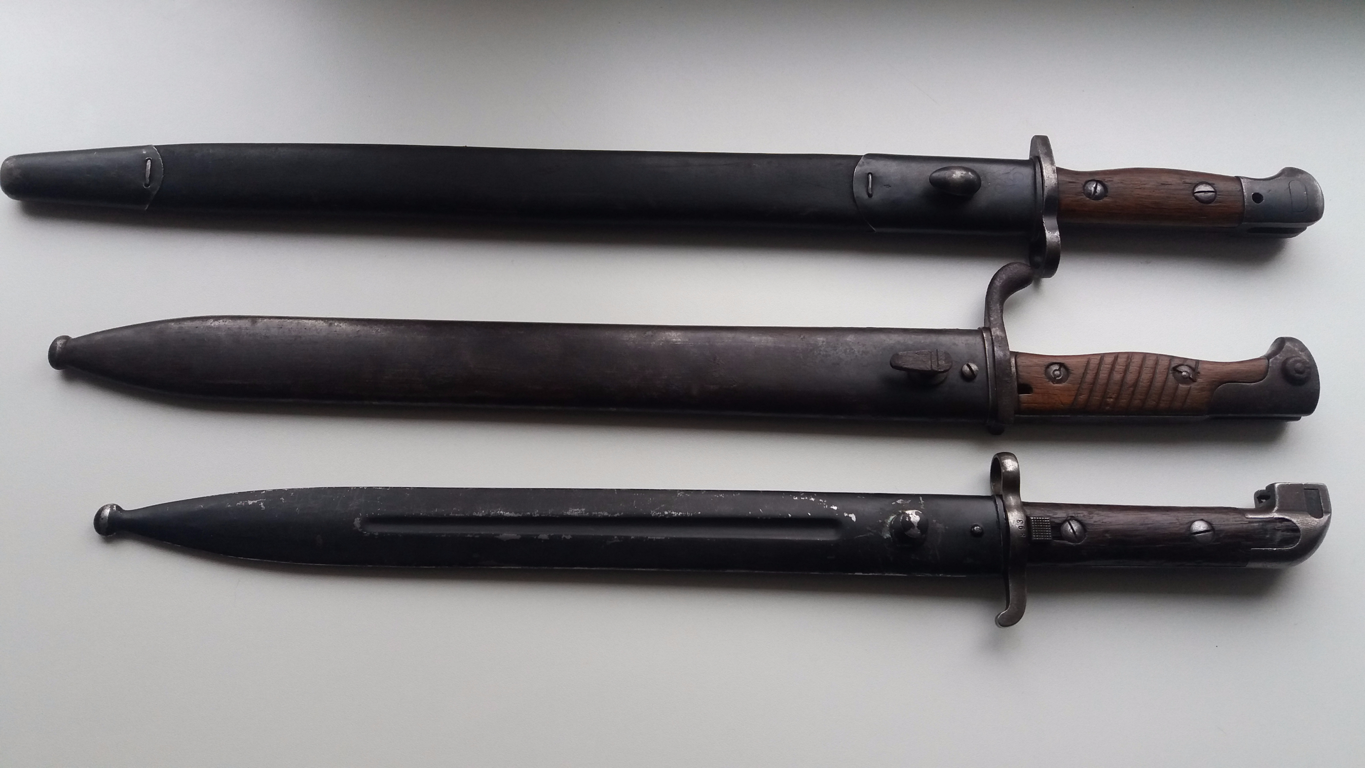- Kreeka M4: kreeka koopia USA M4-täägist ja jälle USAlt saadud M1 karabiinidele. Robustne vasesulamist tera ja originaali jäljendava nahkseibidest käepidemega tääk (tupp on USA varudest)