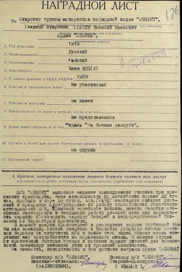 Allveelaev Lembit motoristide vanemale antud Lenini orden. Oli müügis ühes Ukraina portaalis. Huvitav!
