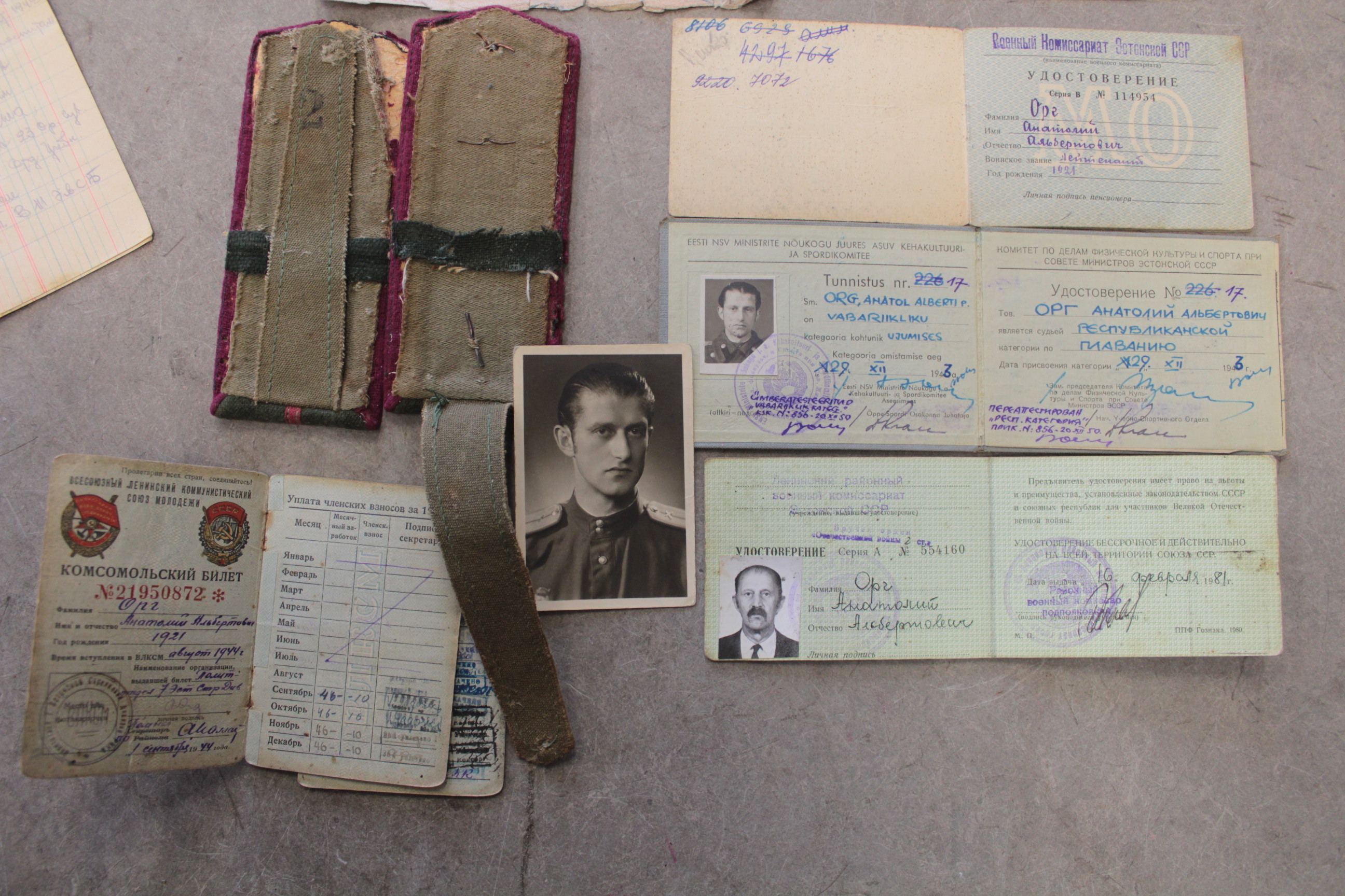 Anatol Org-ile kuulunud pagunid ja dokumendid ja tema enda kirjutatud elulugu.