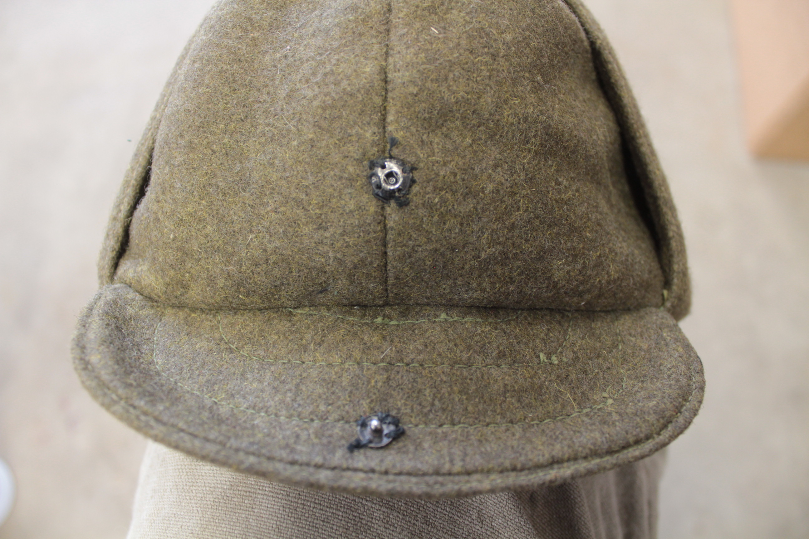 VS või 1920-ndate algusaastate talimüts. See mudel oli kasutusel juba VS ajal ja kanti veel mõned aastad pärast sõda nagu piltidelt paistab. Väheliikuvam väikese nokaga variant. Otsaees näha mütsimärgi klemmide auk. Ühel kõrval on tindiplekk. Manuses on ainus pilt mida olen näinud sellise tüüpi mütsiga. Müts pärineb Draamateatrist kuhu sattus nõukogude ajal kui Ajaloomuuseumi varusid anti sinna lõikuda.