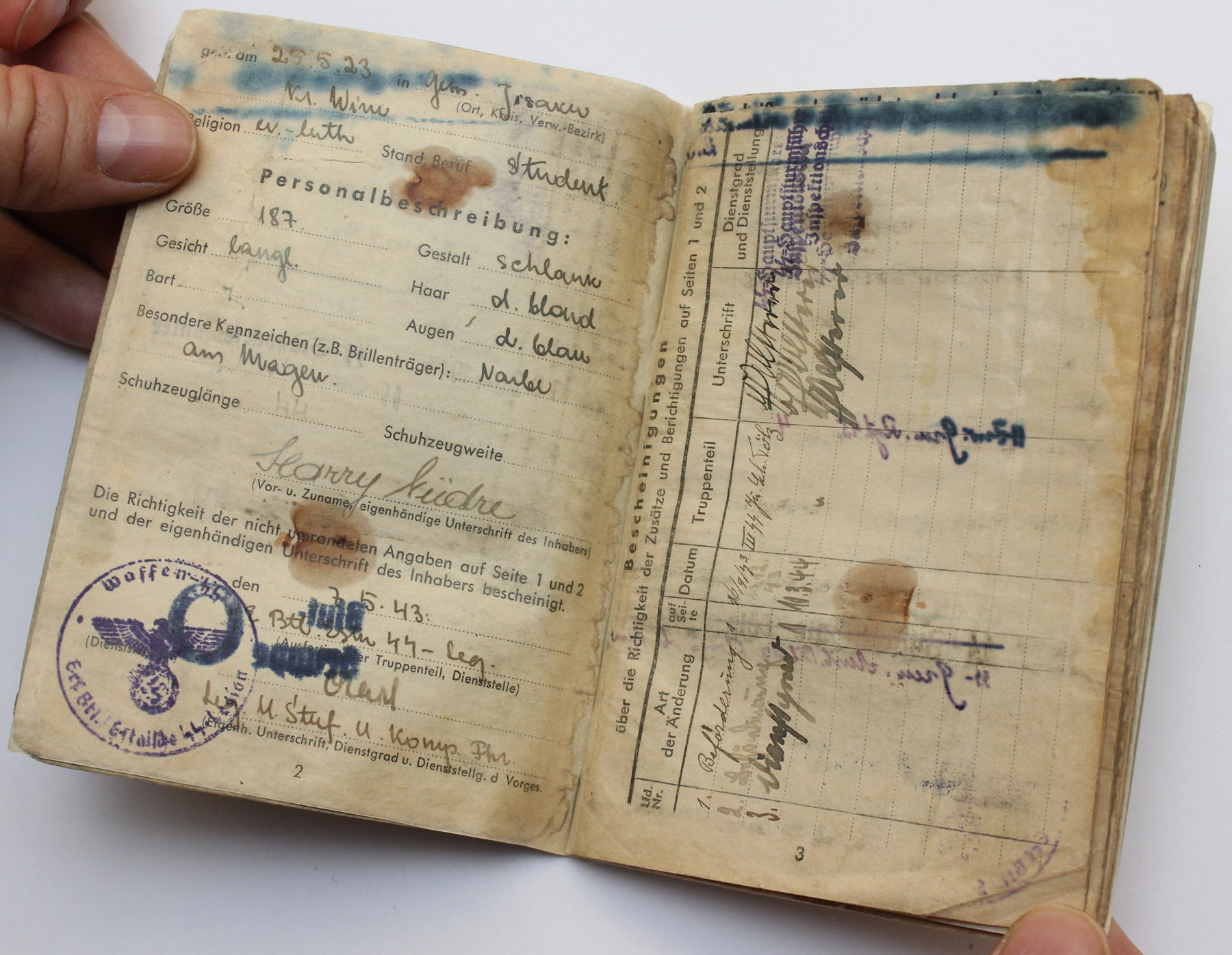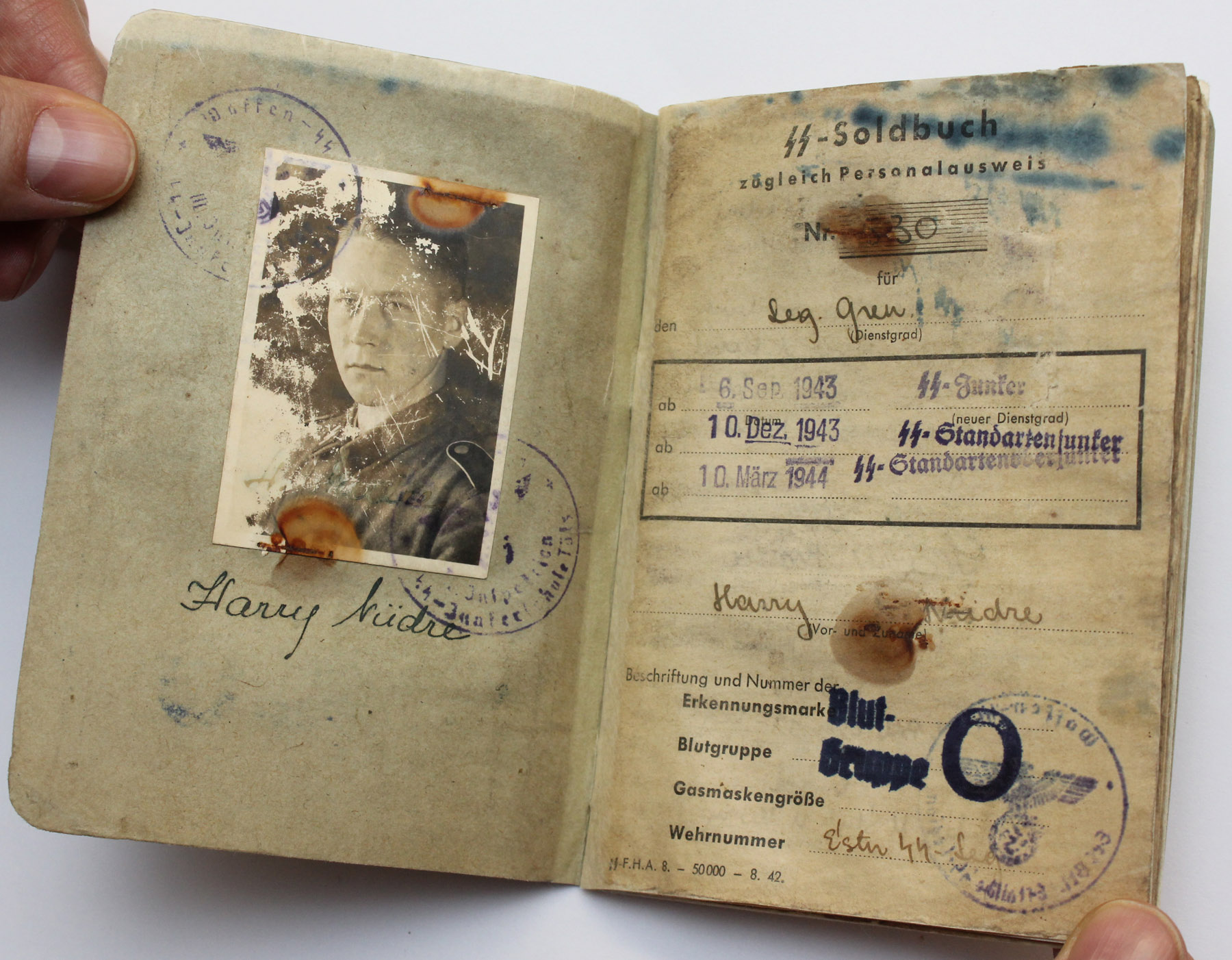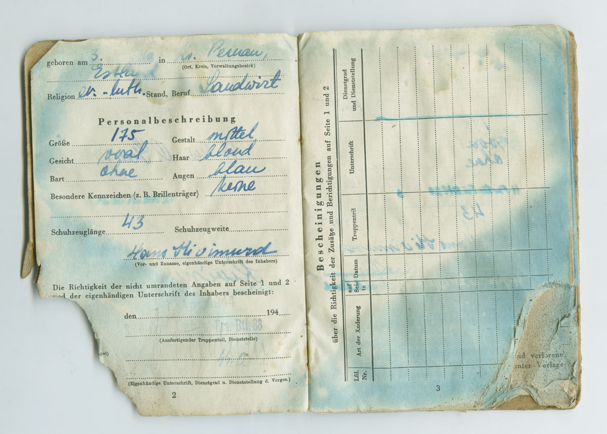 SS Freiwillige Hans Kivimurd'i Soldbuch.