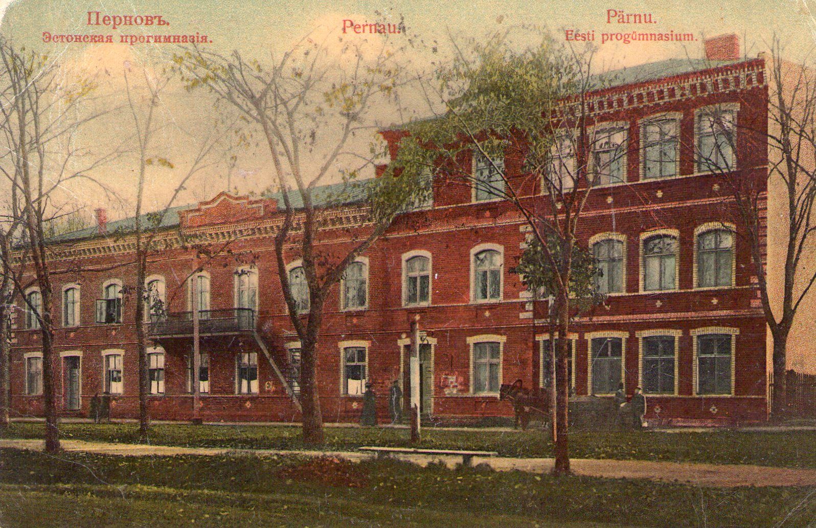 Pärnu Progümnaasium aka Poeglaste Gümnaasium oli sellel ajal mõeldud ikka poistele. Tütarlastele oli Pärnus oma gümnaasium oma hoonega (valmis 1902), nii et minu teada kuni 1944.aastani õpiti enamasti selles linnas eraldi poistest.