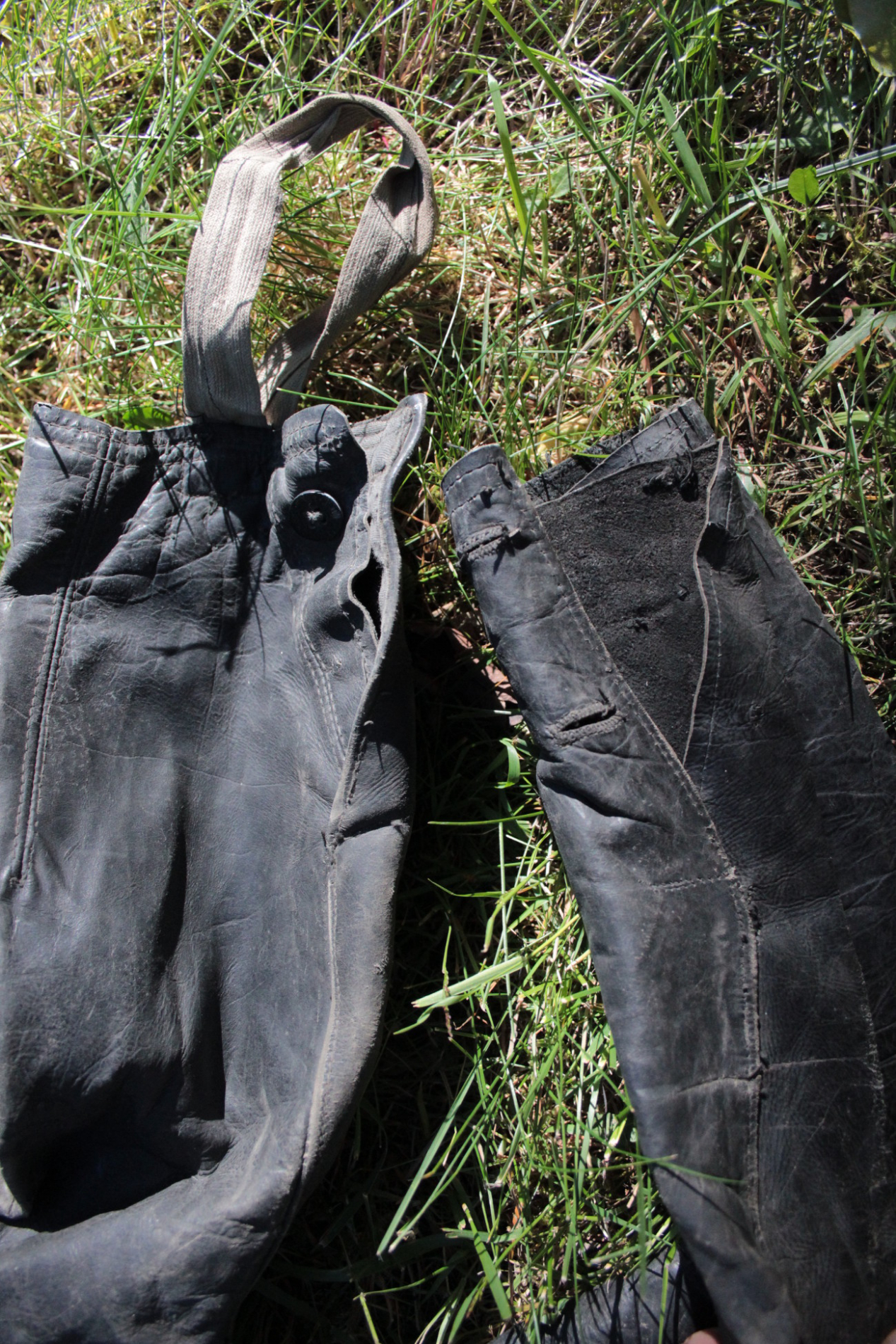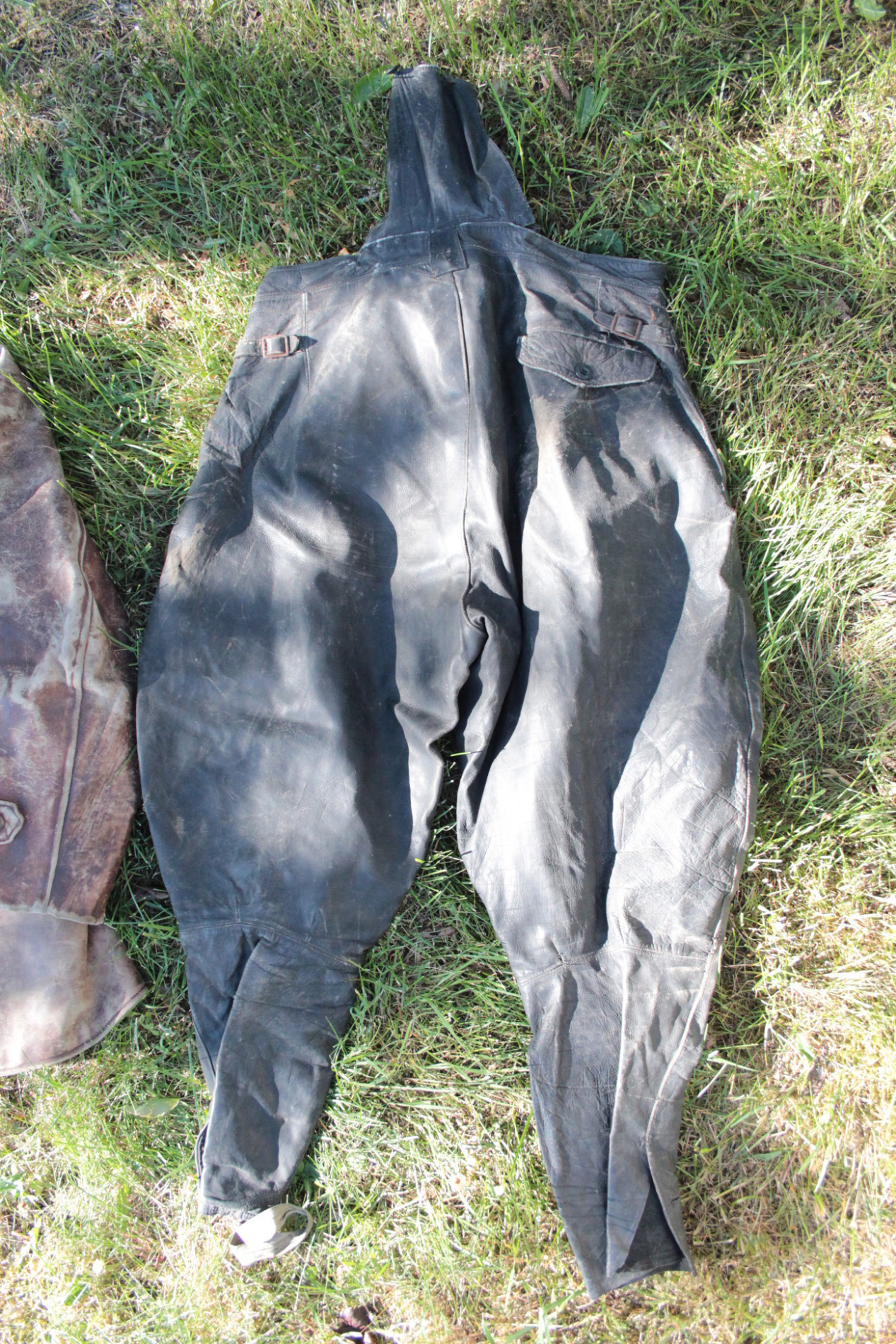 Püksid on ilmselt tsiviil, mootorratturi omad aga vaadates nende teostust ja kvaliteeti siis ütleksin, et EW aegsed. Leides olid küljes omadega läbi olevad EW traksid. Nahk pehme.
