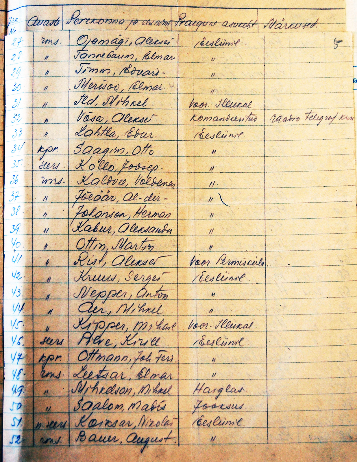 August Sang - 27. juuli 1914 Pärnu – 14. oktoober 1969 Tallinn Arnold Rallmann - August 11, 1944 Permisküla (2./Estn.Grenzsch.Rgt.6 koosseisus lahingus kadunud (geni)