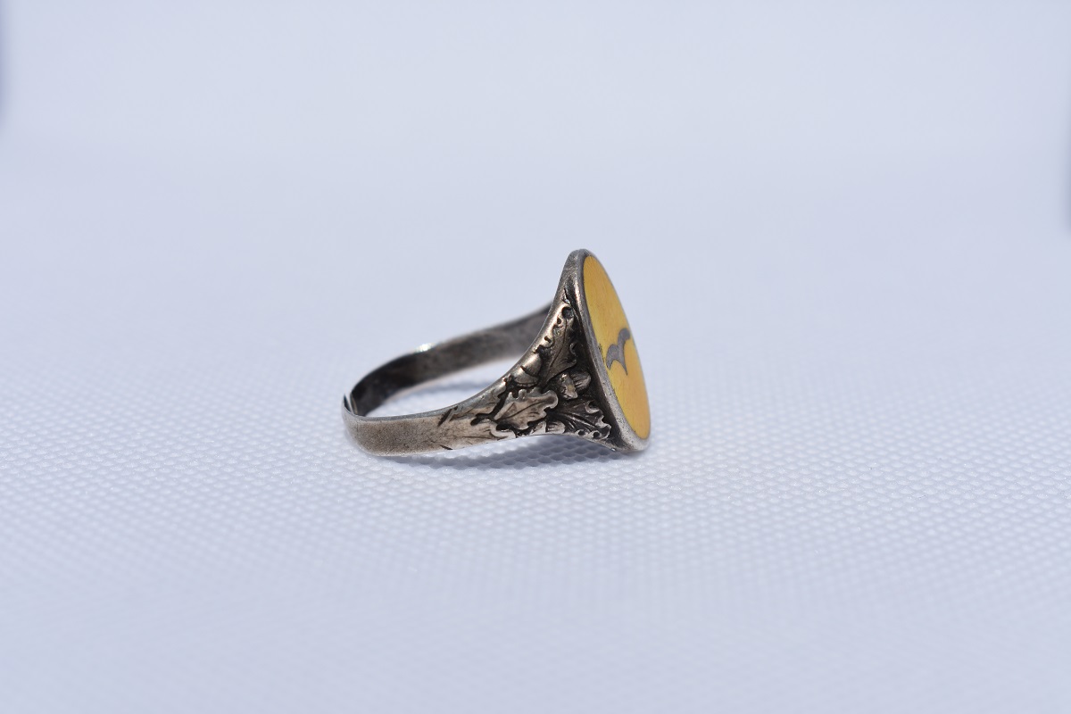 Luftwaffe Fallschirmjäger / Flight crew ring! (Yellow color was used for Flight Crews and Fallschirmjägers). Enamel. Silver. 835F*.
