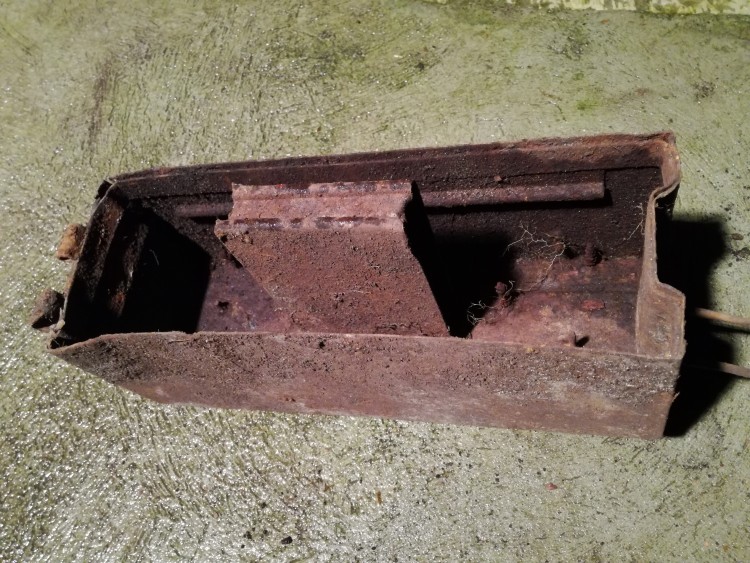 Tükk mida pidasin miinipilduja küljest pärinevaks on hoopis pilduja vedamiseks tarvitatava käru küljest ning hoidis paigal labidat ning kahte nühitsavart.