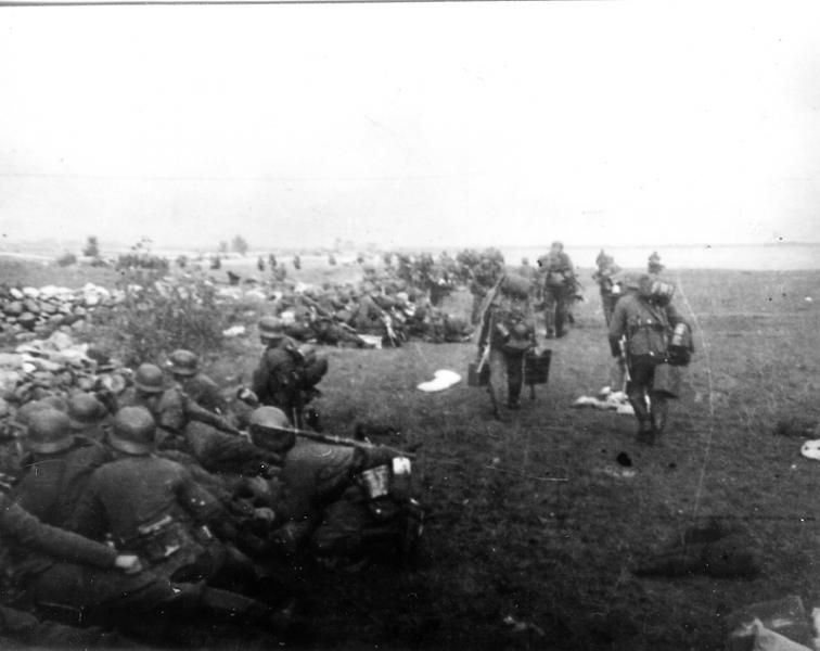 Sakslaste maabumine Muhus 1941. Kahjuks ropult võssa ja pilliroogu kasvanud kuid kaarega kiviaias üheselt tuvastatav.