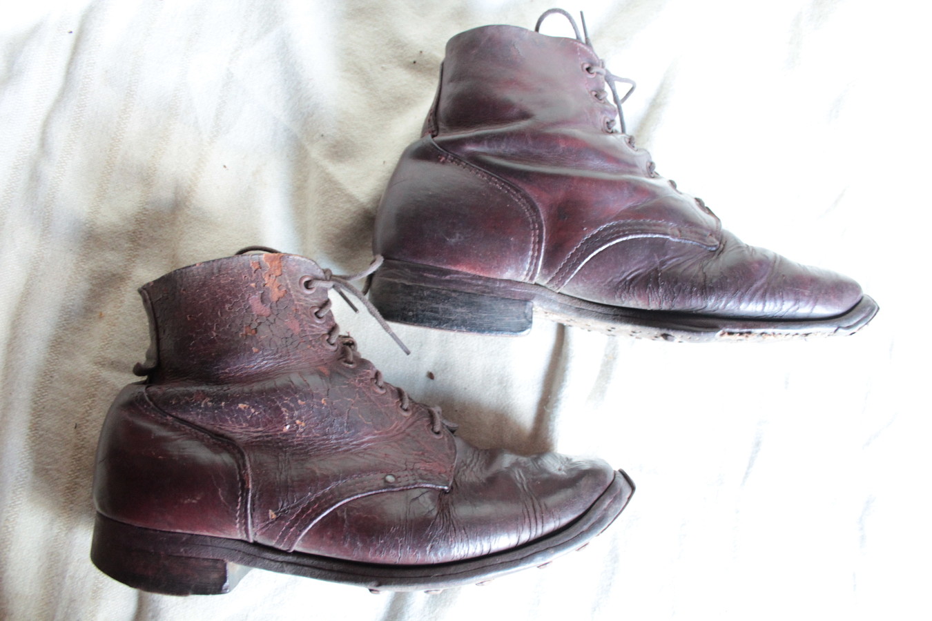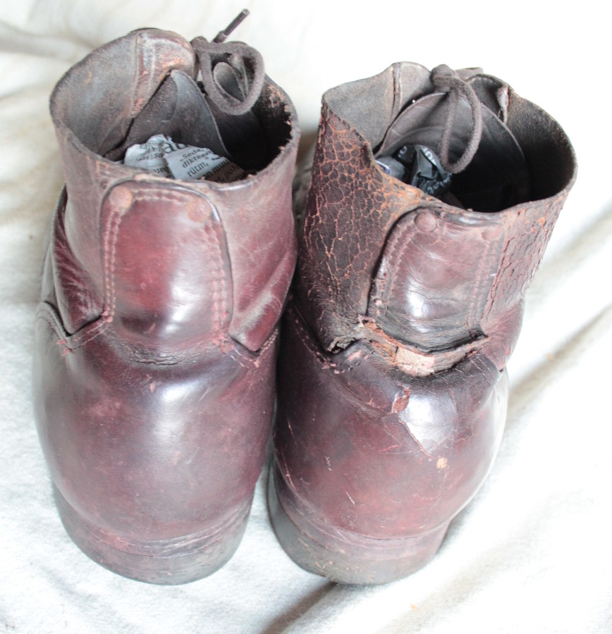 Mõnusalt kantud paar. Nahk väga pehme. Olid sakslase komplektis mul. Ilmselt olnud sakslase trofee või siis venelane löönud alla saksa naelad kuigi kahtlustan esimest.