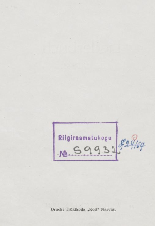 Huh, very interesting. Thanks for additional information, funker. These scans of Liederbuch from 1941 I have also indicate tha same "Koit" printing house. And it has two stamps on it saying "riigiraamatukogu" which translates to state library as I understand.