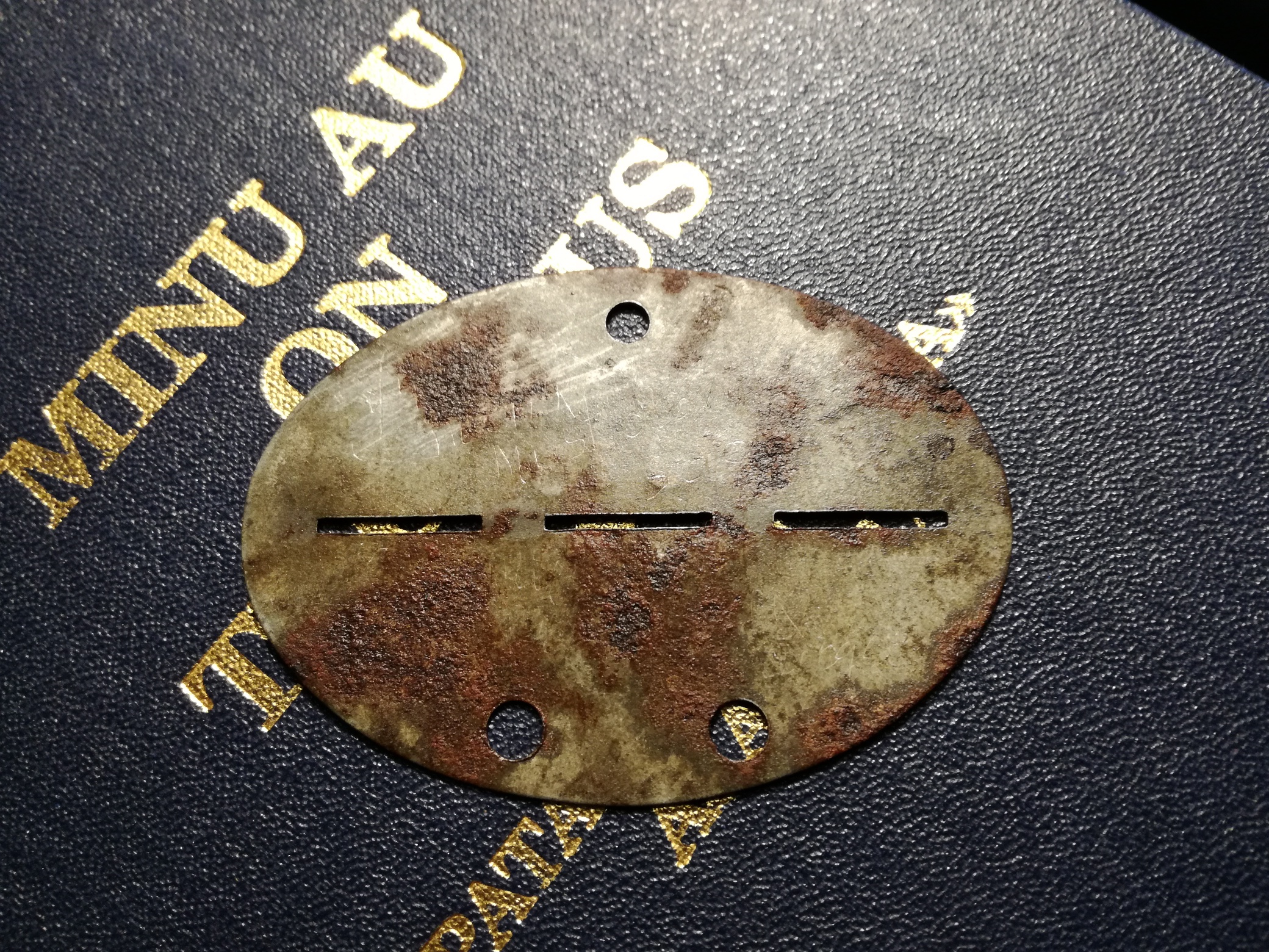 Jõudis minuni üks žetoon mis pärit Saaremaa põhjarannikult, kas on mingit võimalust teada saada kellele see kuulus? Tagumisele küljele on nõela vms. terava asjaga grenaderi nimi ja aadress kuid sellest on loetav ainult "Mustjala vald, Saaremaa". Näha et keegi on seda nime kohta (vasakul ülal) kunagi proovinud kratsimisega hävitada.