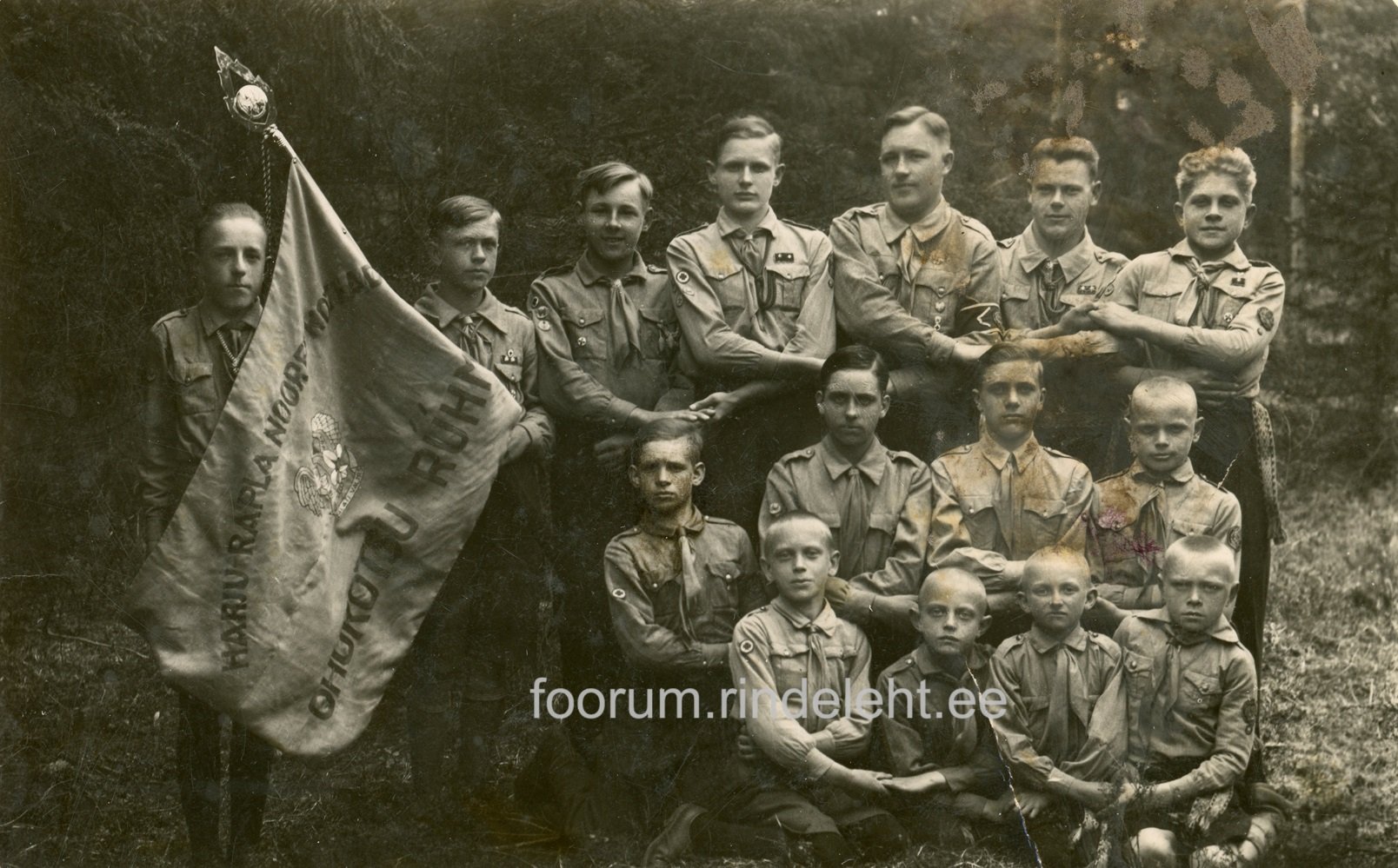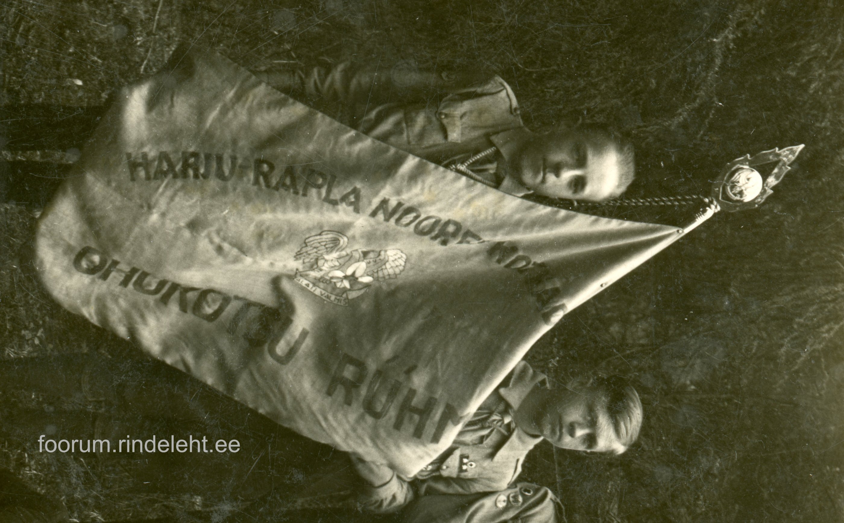 Harju-Rapla Noorte Kotkaste Ohukotsu rühm oma lipuga.