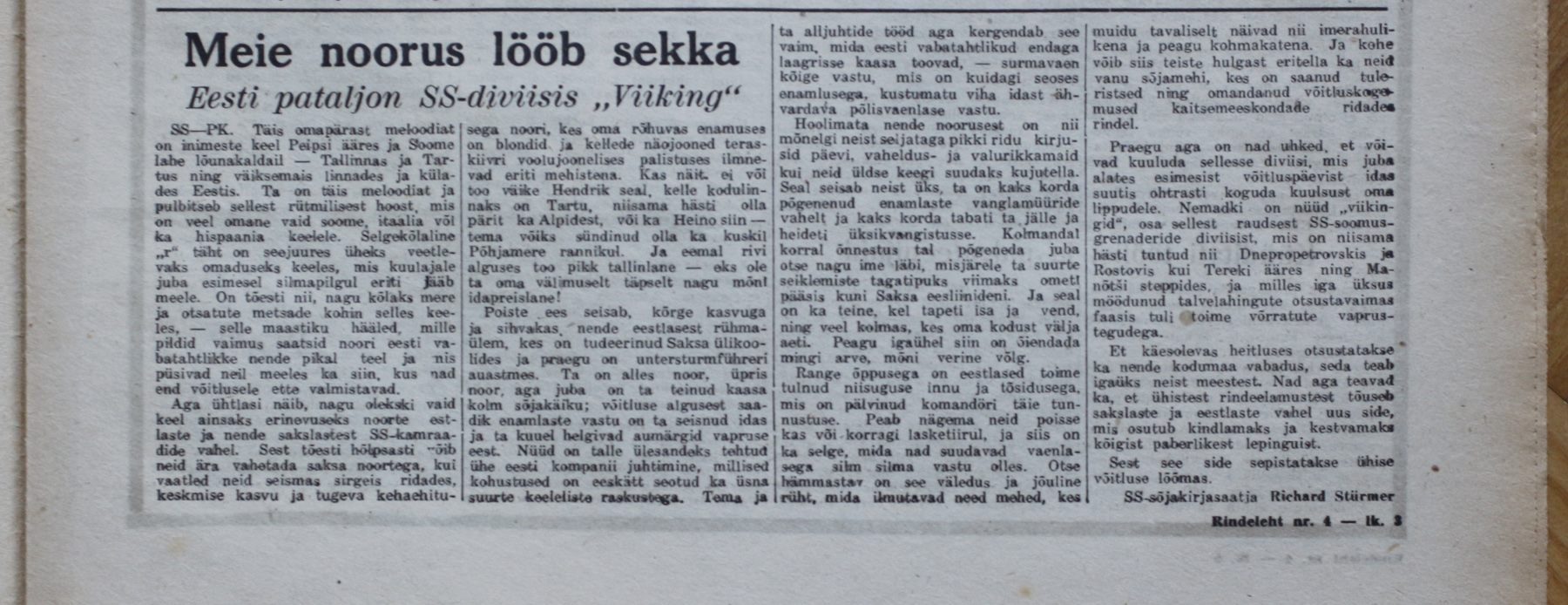 "Rindeleht" nr. 4, 12.06.1943 - leegion, Debica, Heidelager, pataljon "Narwa", diviis "Wiking", lennugrupp, Lehmann, Buschmann, Estland