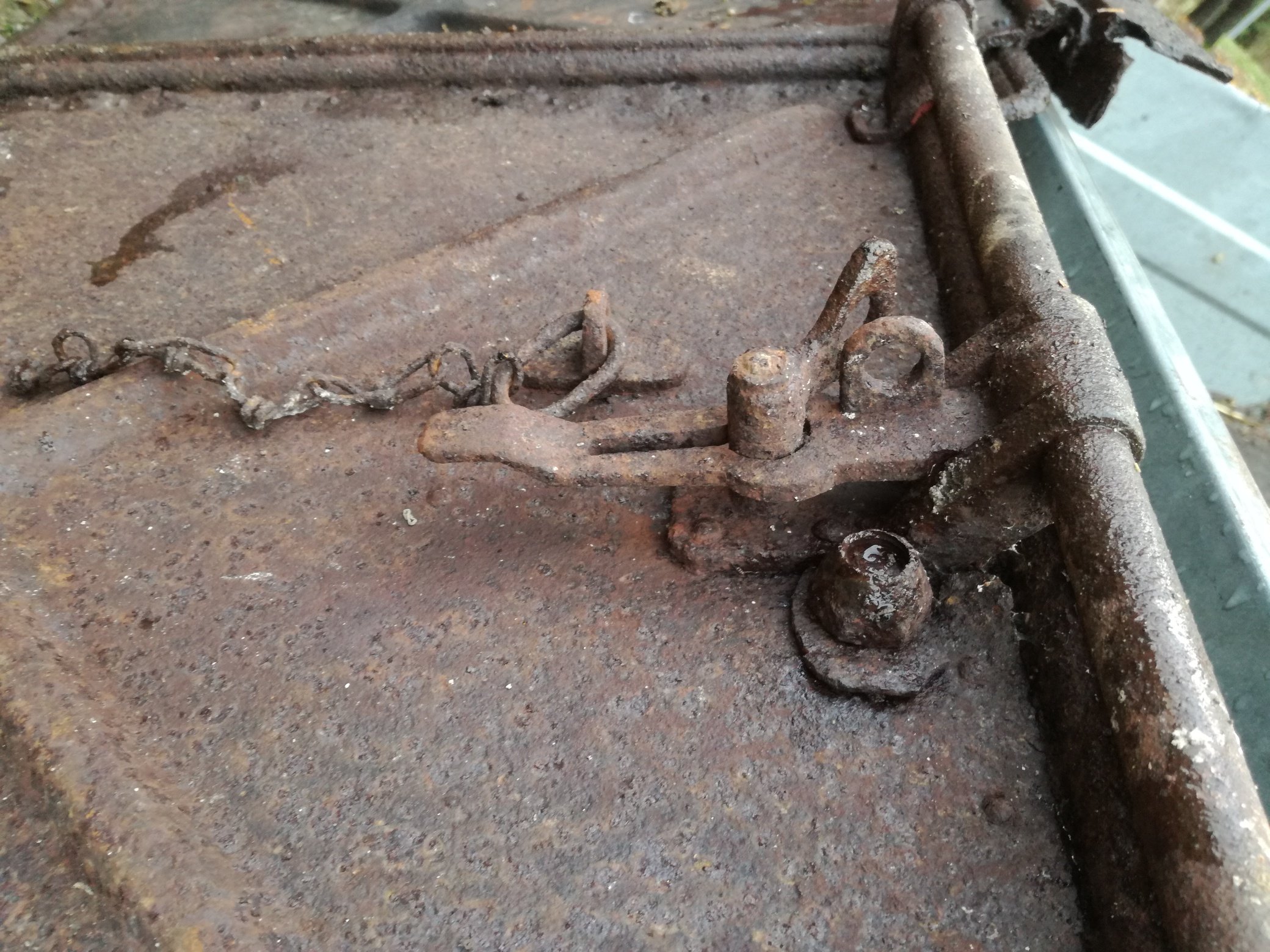 Ega siin vist midagi tuvastada saagi, aga mul on üsna hea tunne, et tegu on uksega mõne meie rügemendi rongi küljest, mis hiljutiste kaevetööde käigus pinnale tuli. Hiljem taipasin muidugi, et see peaks hoopis sisekülg olema ja ega ma siis teiselt poolt pilti teinudki.
