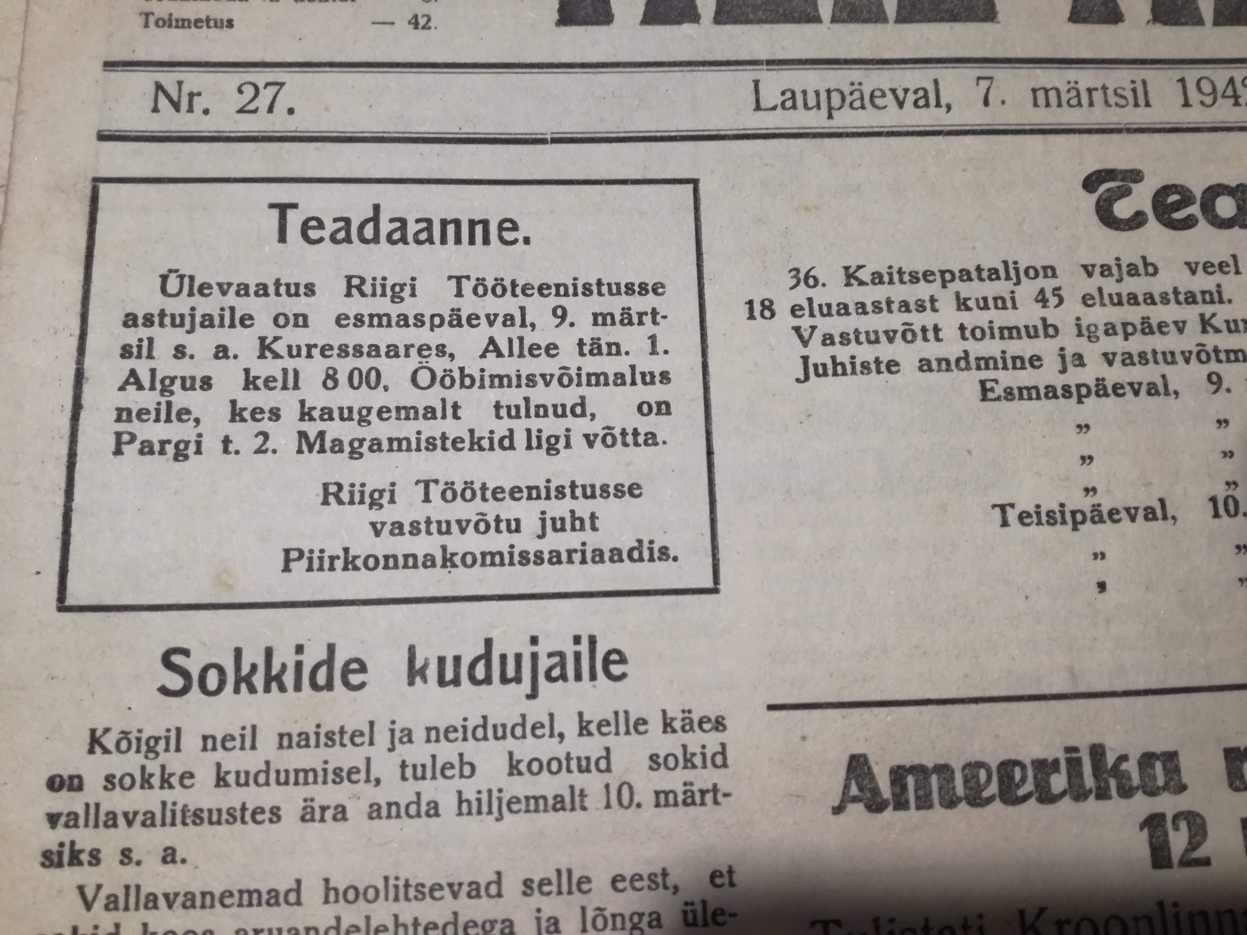 oliver kirjutas: K Nov 06, 2019 5:12 pm Meie Maa 29.01.1942: