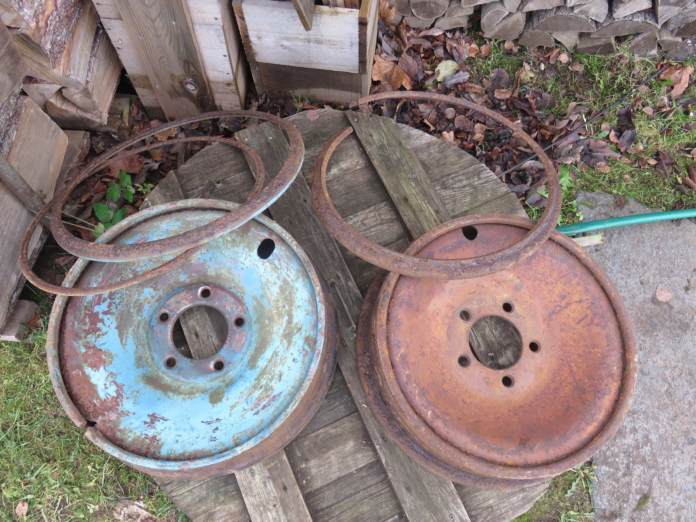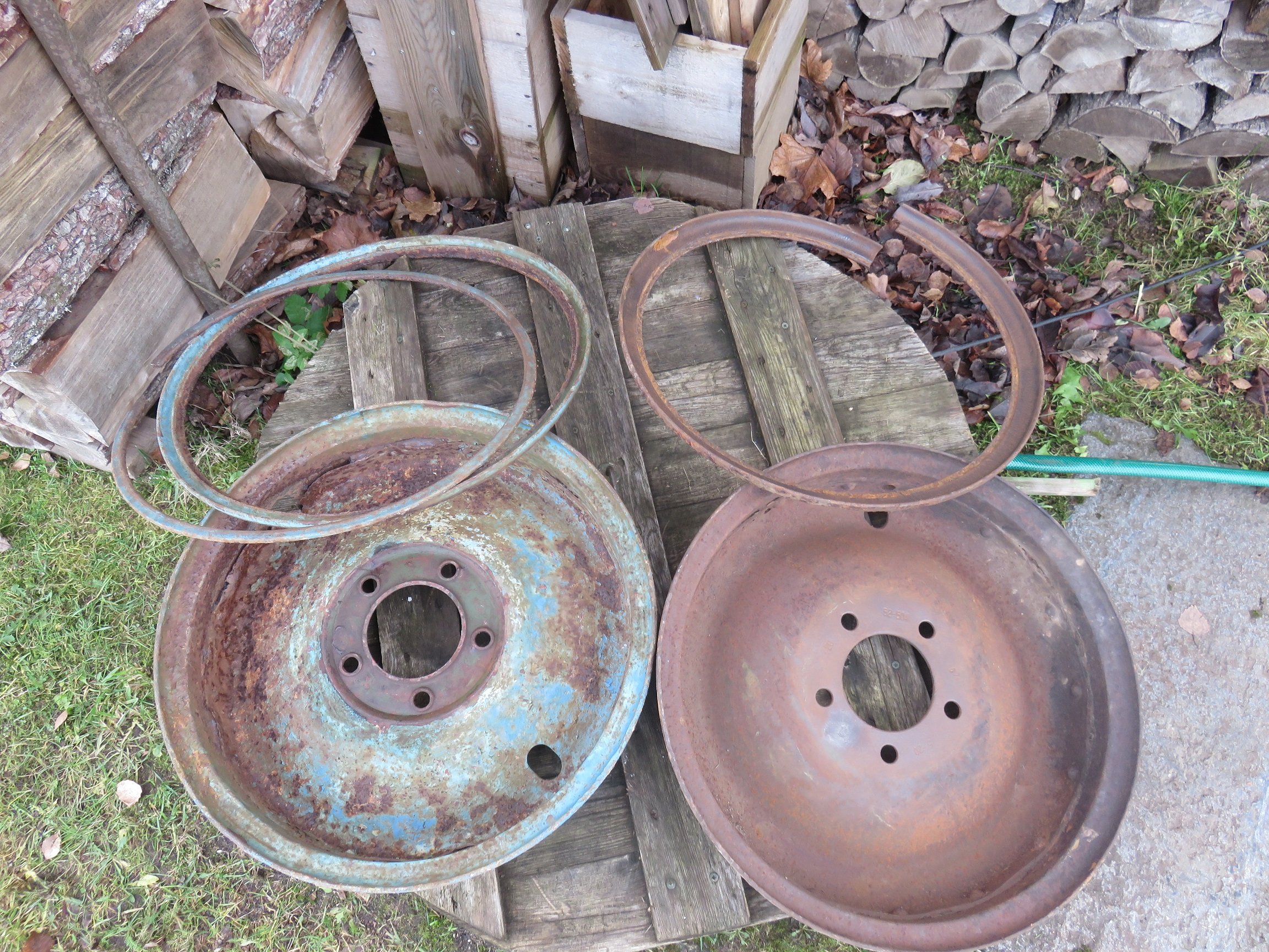 saksa unifitseeritud standard rattad, käisid alla kõikvõimalikele asjadele näiteks Pak 36, Sdkfz 10 ja 250, samuti igasugu haagised näiteks Hf.7 Stahlfeldwagen. Tootjaid oli mitmeid, välimused olid erinevad - on ümmarguste ja ovaalsete aukudega jne, tavaliselt olid poldiaugud koonusesse stantsitud nagu sinu sinisel veljel, aga võimalik et näiteks sõjalõpus tehti ka lihtsamalt. Keera sinised alla ja on igati originaal.