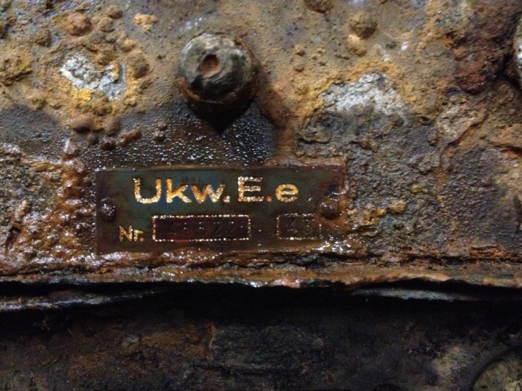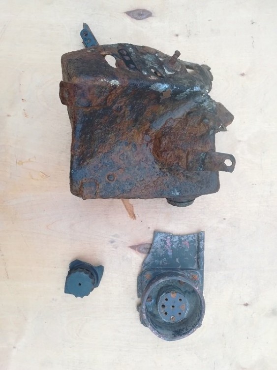 Mul on samast piirkonnast umformeri lõhki lennanud fragment ning igatpidi väändunud ühenduskarp (too, kuhu külge komandöri klapid jms ühendatakse). Paraku on seis üsna kole, aga kui komplekti kokku ajada, siis ehk veidi aitab. Läheduses oli üks laagri tolmukate (?) ka, vast selline tikutoosi suurune, logo serv oleks nagu hammasratta tegumoega. Kahtlustan, et selles lohus, kus need vedelesid, võis üks masin maha jääda, roomikujäljed tundusid maastikul veel nähtavad. Ilmselt visati mingi pauguti luugist sisse, kui masin maha jäi.