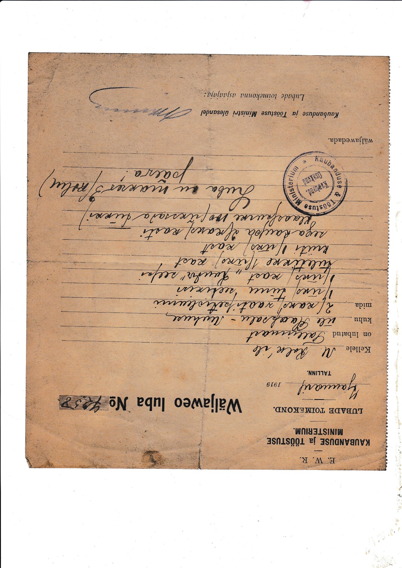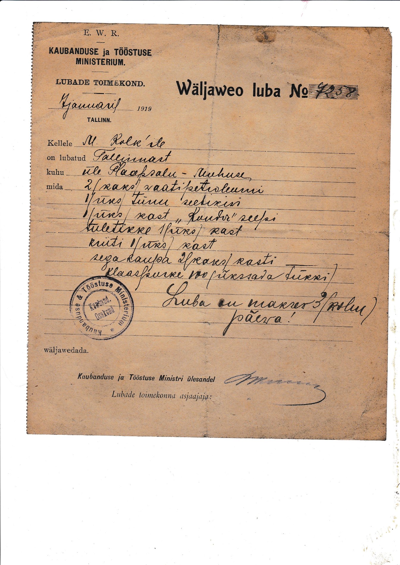 Vabadussõja aegne kaubaveo luba