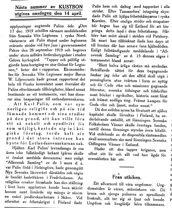 I have not put so much time into research for the Swedes in Estonia.