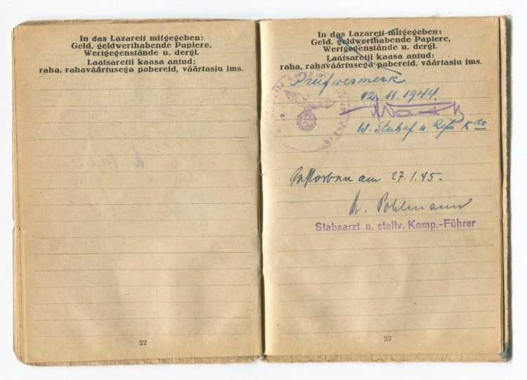 Unteroffizier August Toose Soldbuch (Eesti Sõjamuuseum, KLM ET 6151:35 F7)