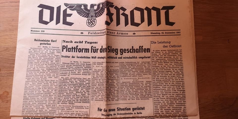 Ajalehe Die Front 5 järjestikust numbrit detsembrist 1941.