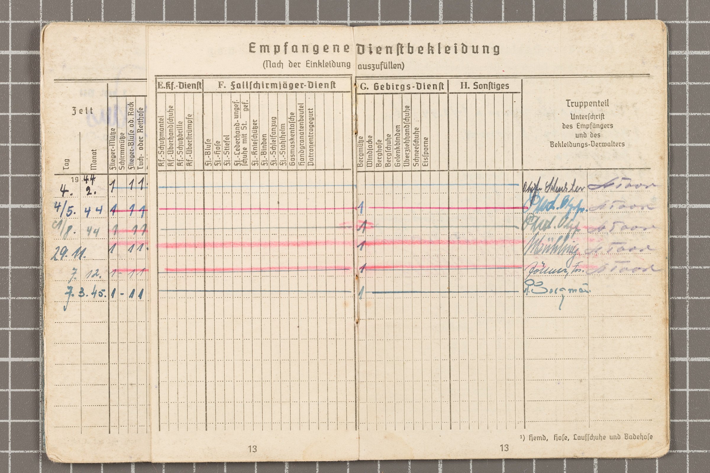 13. leheküljel on väga täpselt üles märgitud, et Pajule on väljastatud SS markeeringutega kompass ja binokkel (Marschkompass-SS ja Doppelfernrohr für SS 6x30). Pole varem eestlaste palgaraamatus sellist asja kohanud.