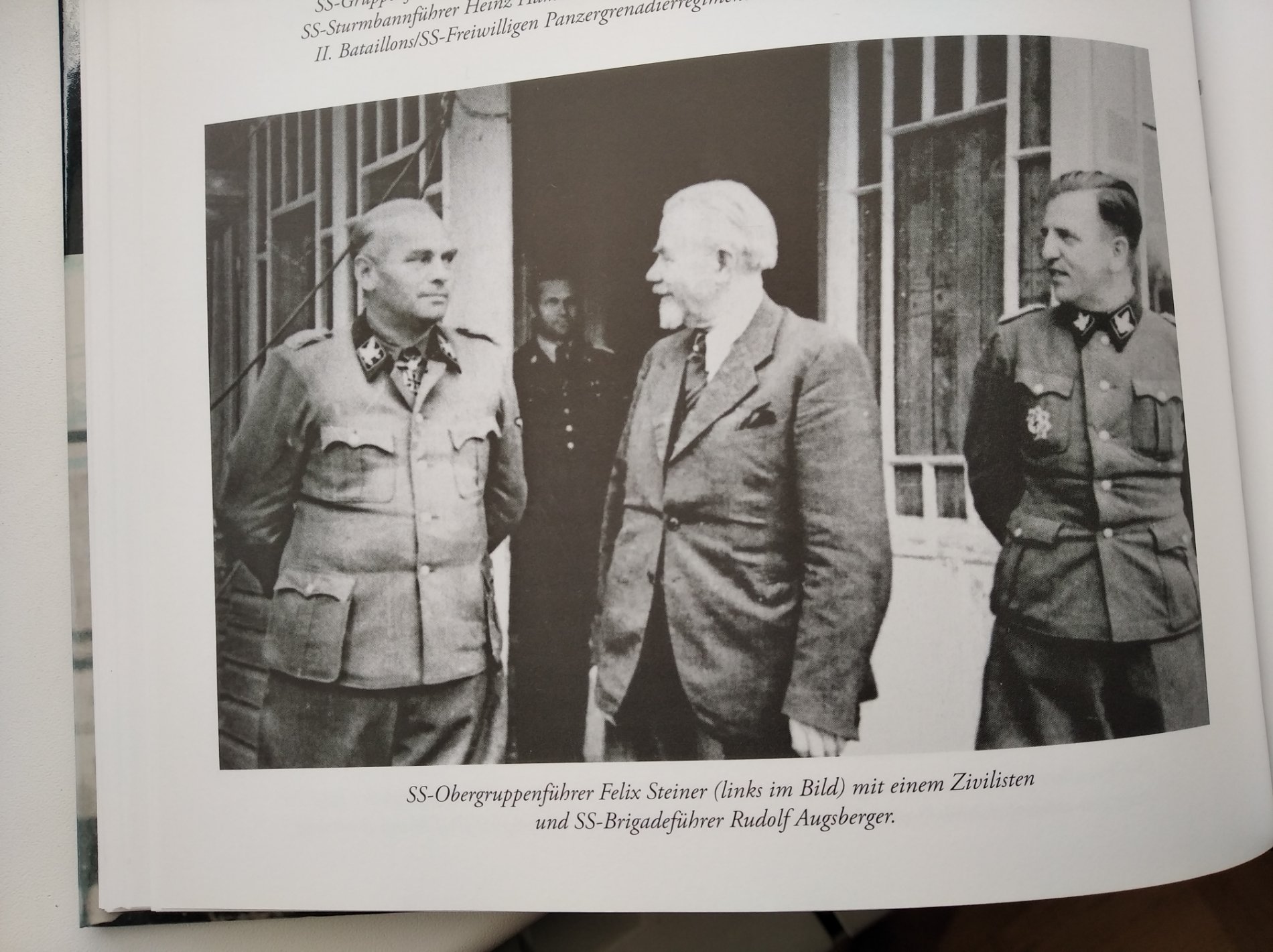 ..bullshit text seal lingil ju - kuupäev võib õige olla aga aastaarv on igatahes valeOriginal press photo, photo shows (later) Schweretrtrager SS-Obergruppenfunrer Steiner with Admiral Pitka and (later) RKT SS-Brigadeführer Franz Augsberger, dated 15.8.1943, clear photo shows officers in conversation outside Admiral Pitka's command post, meeting to discuss admission of Estonian volunteers..