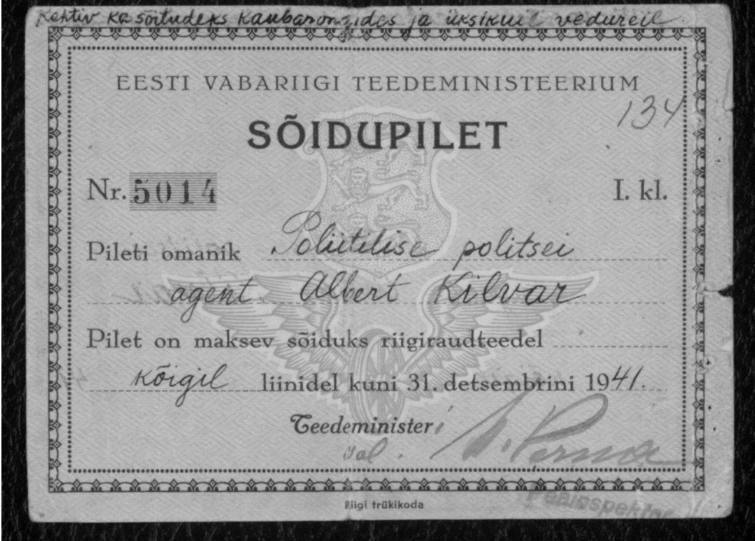 Sellest ma aru ei saa, miks on see arhiivis Saksa-aegsete politseinike arvestuskaartide vahele pandud. Pilet kehtib küll kirjade järgi 1941. aasta lõpuni, aga kui see on välja antud paar aastat varem, siis vahepeal oli ju tiblunnide okupatsioon ja Saksa ajal Eesti Vabariiki ei eksisteerinud. Või on see lihtsalt kusagilt leitud ja arhiivitöötaja vaatas, et oh, siin on sama nimega mehe andmed, paneme selle vana pileti ka tema juurde? Sel juhul huvitav kokkusattumus, et mees töötas Poliitilises Politseis nii EW ajal kui Saksa ajal ja tema vana sõidupilet langes tööalase karjääriga kokku :D
