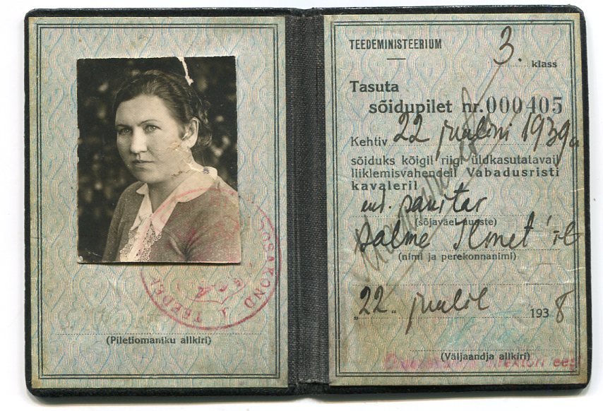 Lisan veel vabadusristi kavaleri Salme Ilmeti Tasuta sõidupileti pildi sõiduks kõigil üldkasutatavatel liiklemisvahendeil.