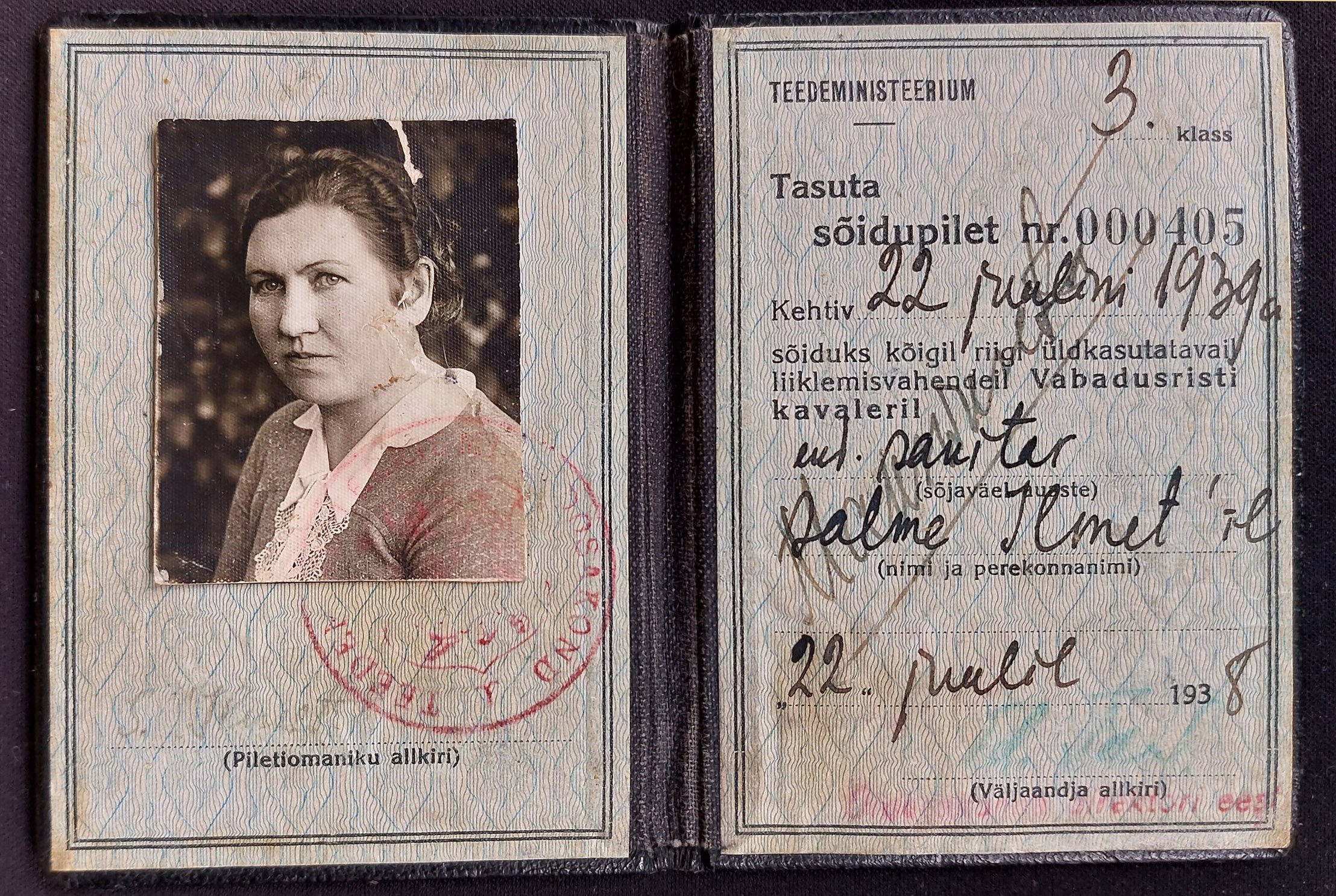 Vabadussõja naiskangelase pr. Ilmeti tasuta sõidudokumendi pildile lisan veel esi ja tagakaane fotod.