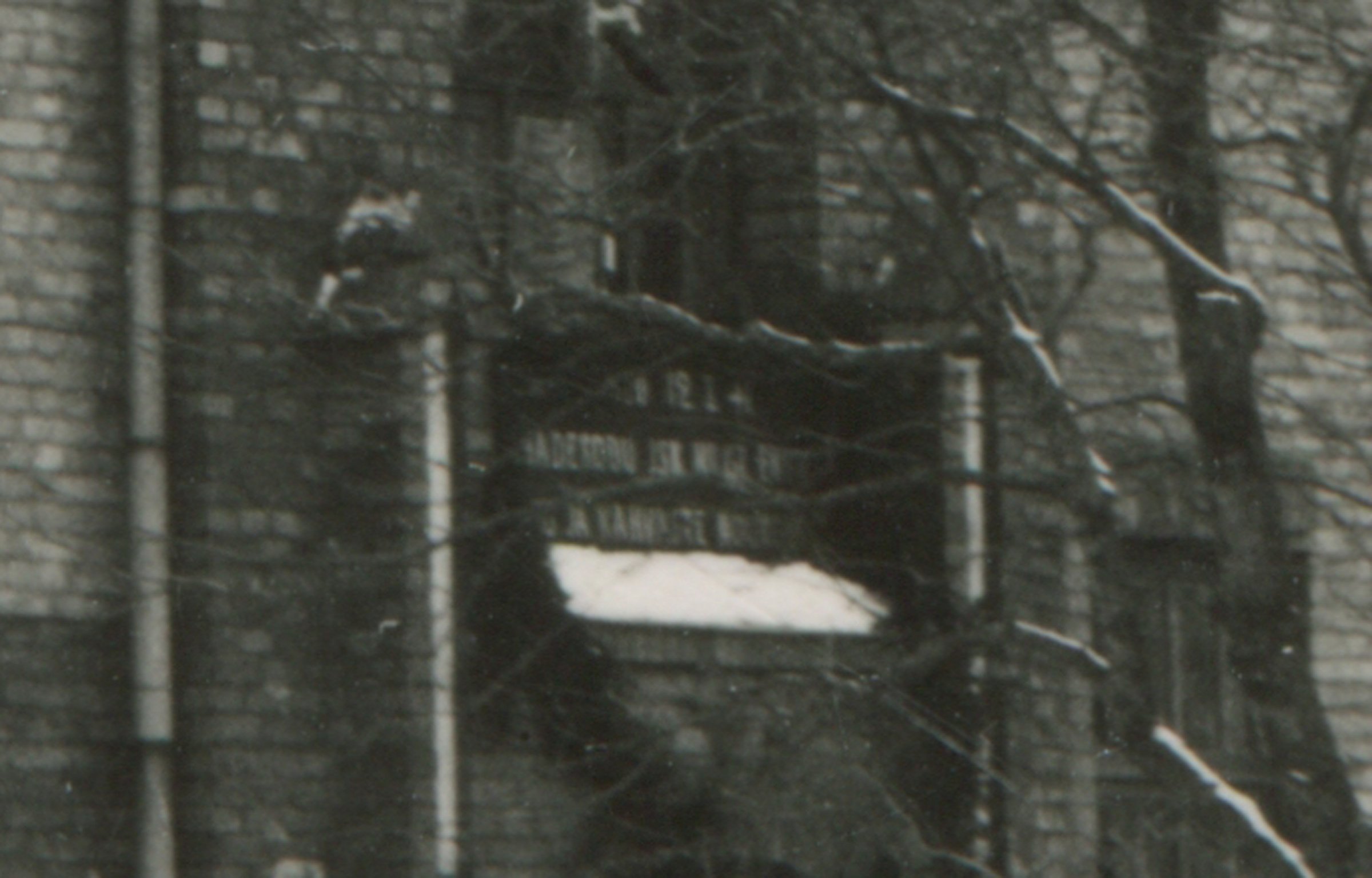 Ukse kohale akna ette on riputatud suur sirbi ja vasaraga viisnurk ja selle all on mingi eesti keelse tekstiga tahvel.