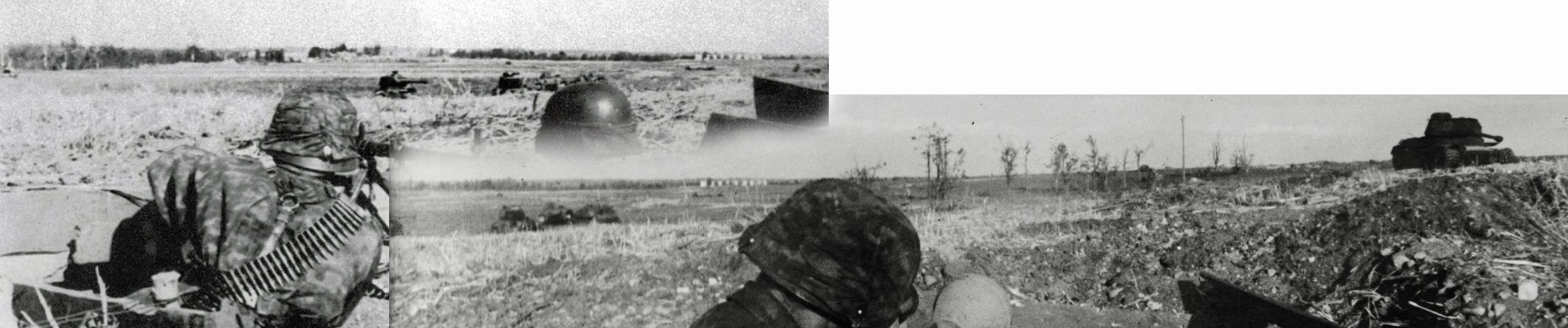 Veel üks ülesvõte enam-vähem samast kohast, kus eelmisel lehel näidatud Panzerfaust'i mees asus (kuulipildurid on PF-mehest mõned meetrid vasakul). Parempoolse sõduri kiivri taga on näha tankikolmik, millest keskmine tundub olevat vist tagumise otsa keeranud vaataja poole.