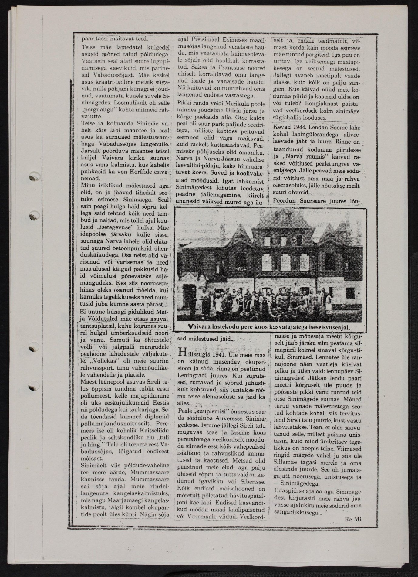Remi Milk, kes veetis nooruses aega Vaivara kandis, kirjeldas ennesõjaaegset Lastekodumäge ühes 1983. a. pärit kirjas (ERA.4996.1.20):