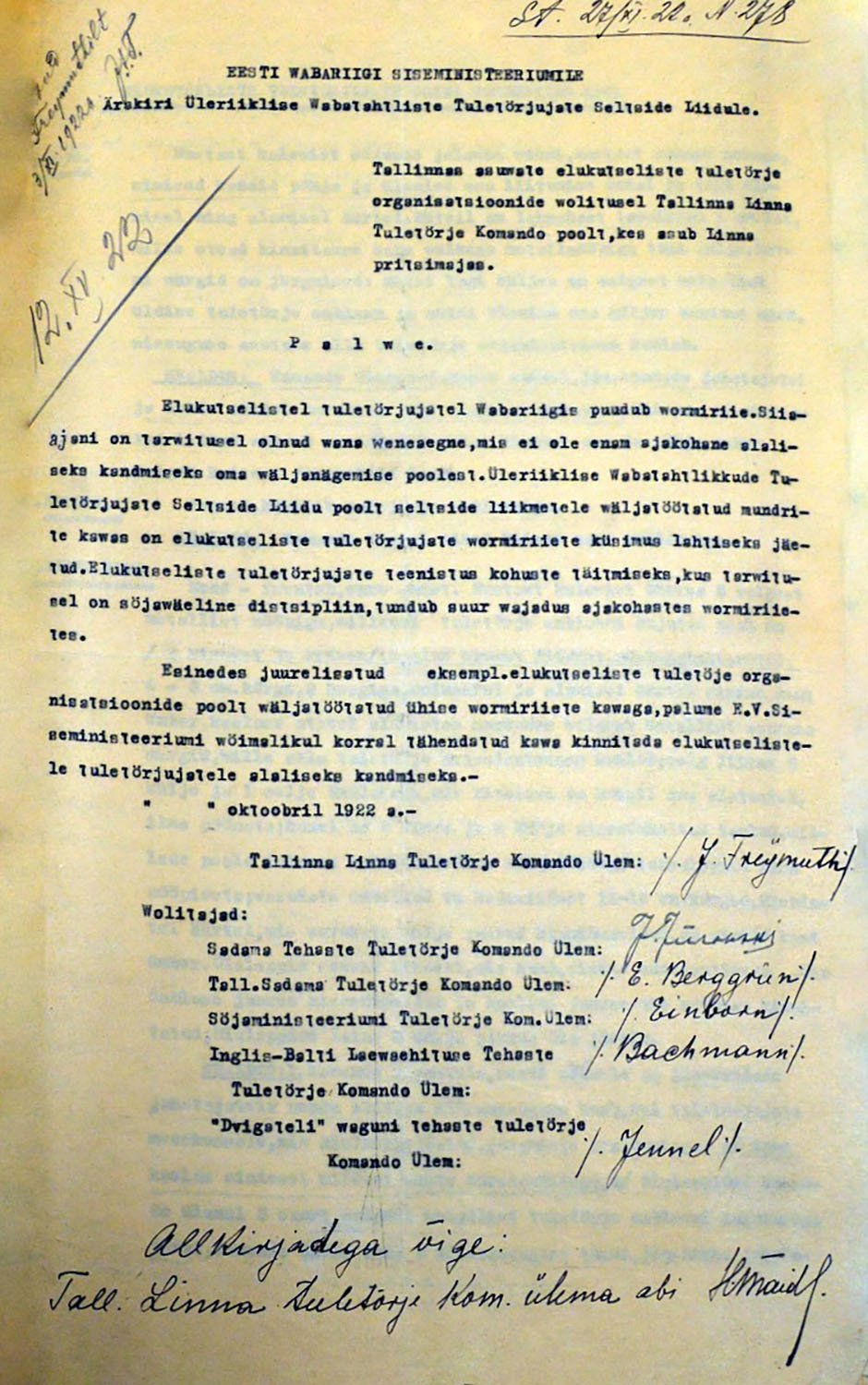 Fotol Tallinna kutselise tuletõrje kraetrafarett.
