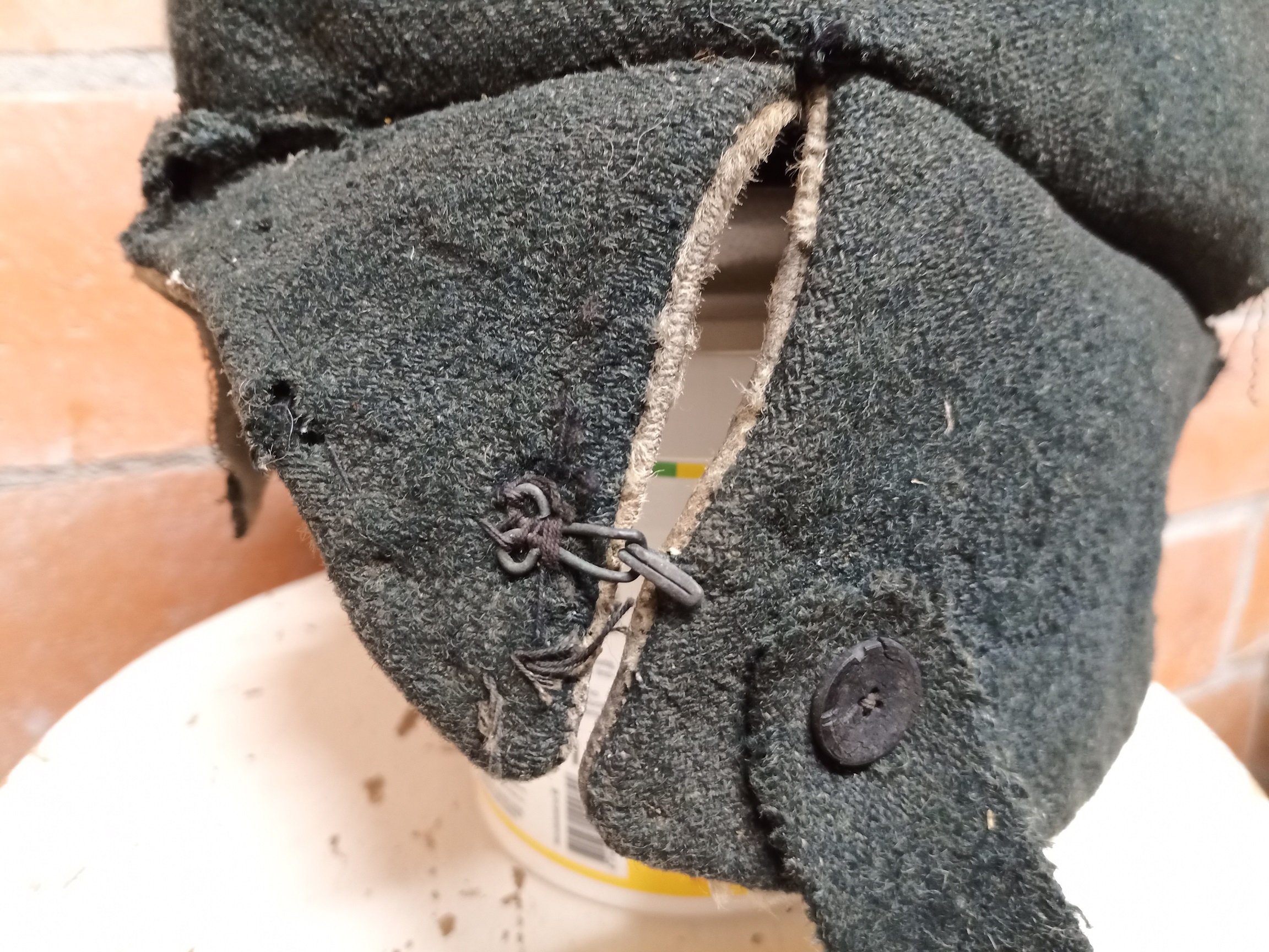 Kaasfoorumlase soovitusel sai võimalikku värvimist kontrollitud. Ei tuvastanud toonierinevust õmbluste vahel ega ka niitidel. Mütsi täpne lugu pole teada, aga korjati ca 15a tagasi ära pööningult, kus vedelesid kõrval veel saksa poolsaapad ja "ahv". Peremees oli seda manti 44ndal hulga koju tassinud, saksad olid kohalikus mõisapargis laojääke lõkkesse loopinud ja kohalikele miskit sooja aluspesu ja muud paremat jaganud, samuti lasid tühjaks tassida kohaliku viinaköögi piirituse enne, kui jääk põlema süüdati. Peale sakste putku panekut ja enne venelaste tulekut oli veel üks vanker koos hobusega hoovile jalutanud, peal oli olnud MG, kast šokolaadi ja muud paremat. Toru pisteti maasse ja kaevati hiljem julgeolekutöötajate poolt vihje peale välja, aga muu jäi ikka "soomuseks".