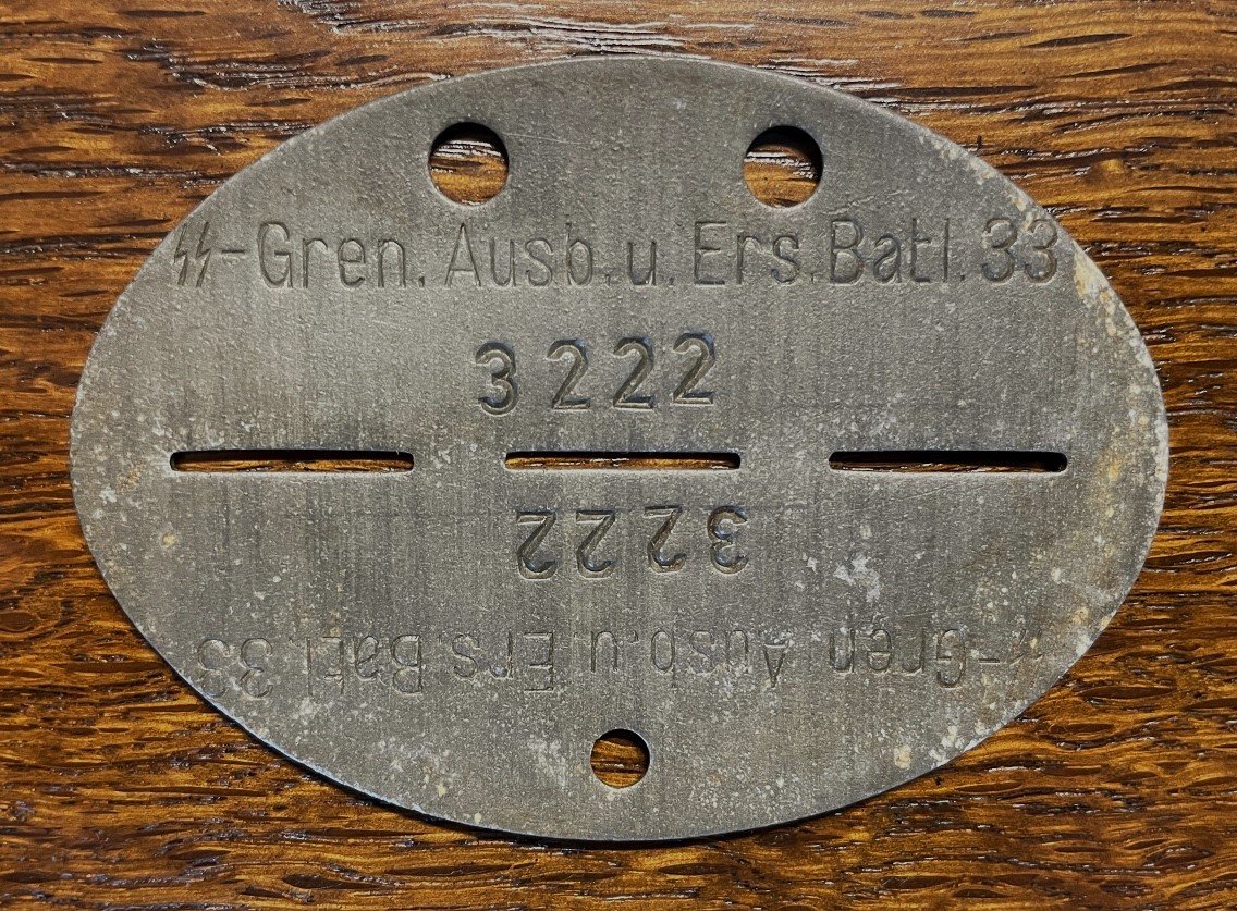 Igatahes kui kellelgi on tundmatuid SS-Gren.Ausb.u.Ers.Batl.33 kirjadega žetoone siis võib teemasse pildi lisada ja ehk õnnestub nimi, üksus ja muud andmed juurde leida.