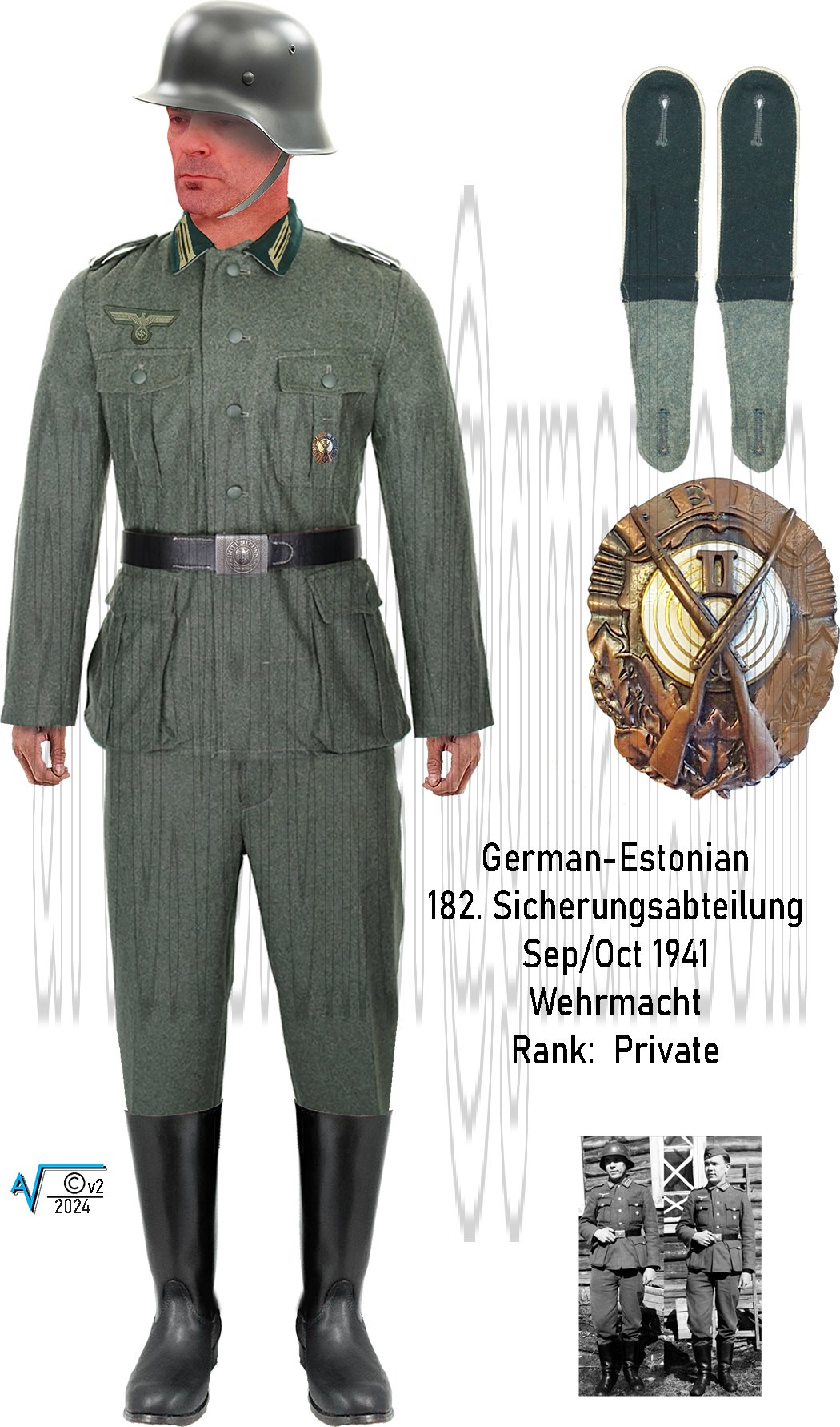 Lisan siia Teile hindamiseks oma joonistuse ühest sõdurist saksa-eesti 182. Sicherheitsabteilung'ist/julgestusgrupist. Arvan, et nende munder nägi nii välja (Teie jagatud foto) - aga ma ei tea mis see ümmargune (eesti) märk oli tasku peal. Aitäh abi eest!