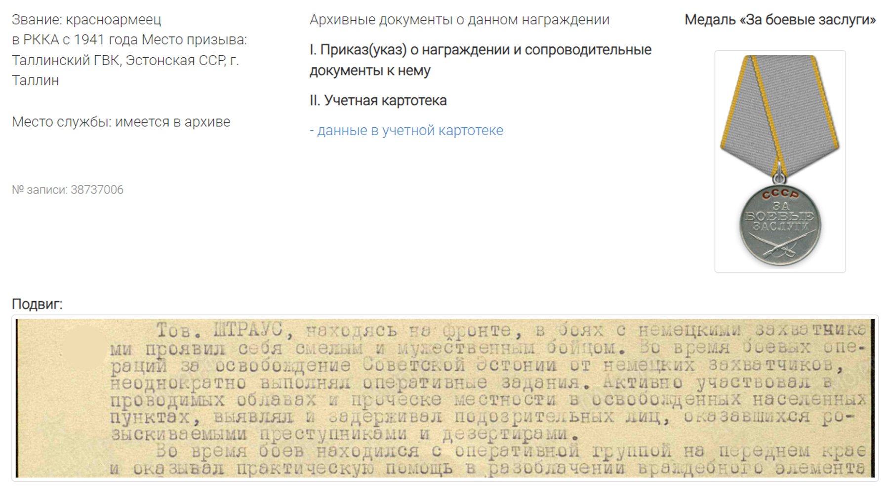 Autasustatu oli Valentin Straus, kes mobiliseeriti Punaarmeesse 1941. aasta suvel.